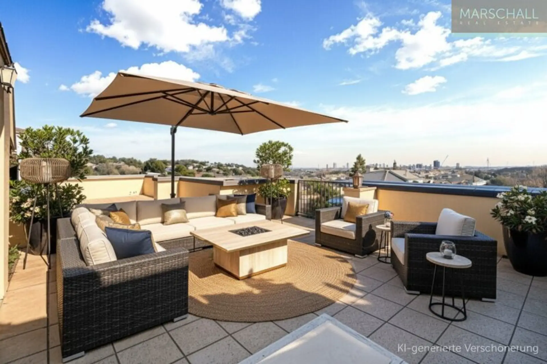 Hinweis: Im Rahmen unserer Offenlegungspflichten weisen wir darauf hin, dass unsere Fotos mittels KI-Technologien optisch verschönert und bearbeitet werden, sowie leere Räume mittels KI-Technologien virtuell möbliert und dekoriert werden. Betreffende Visualisierungen tragen als Bildunterschrift Bezeichnungen wie "KI-generierter Einrichtungsvorschlag"