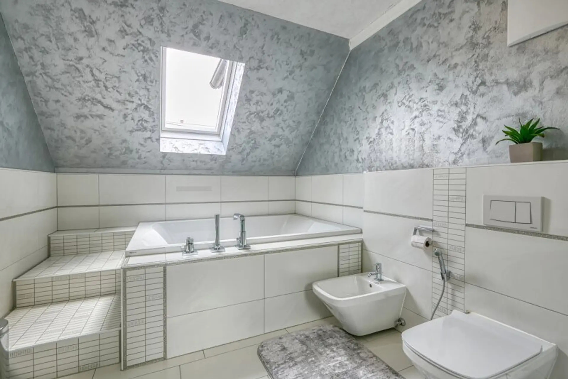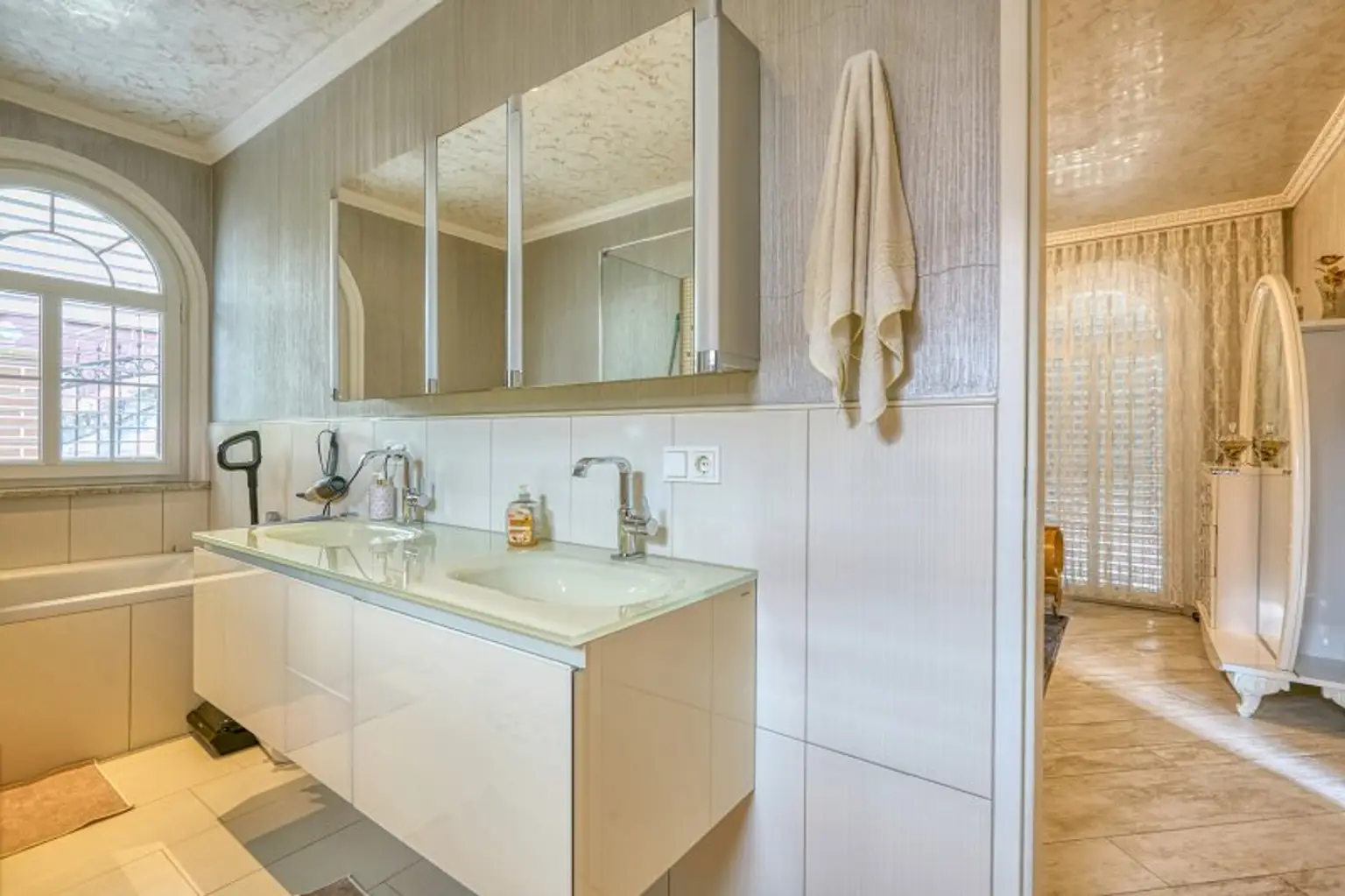 * Badezimmer mit Doppelwaschbecken, Badewanne, WC & Bidet