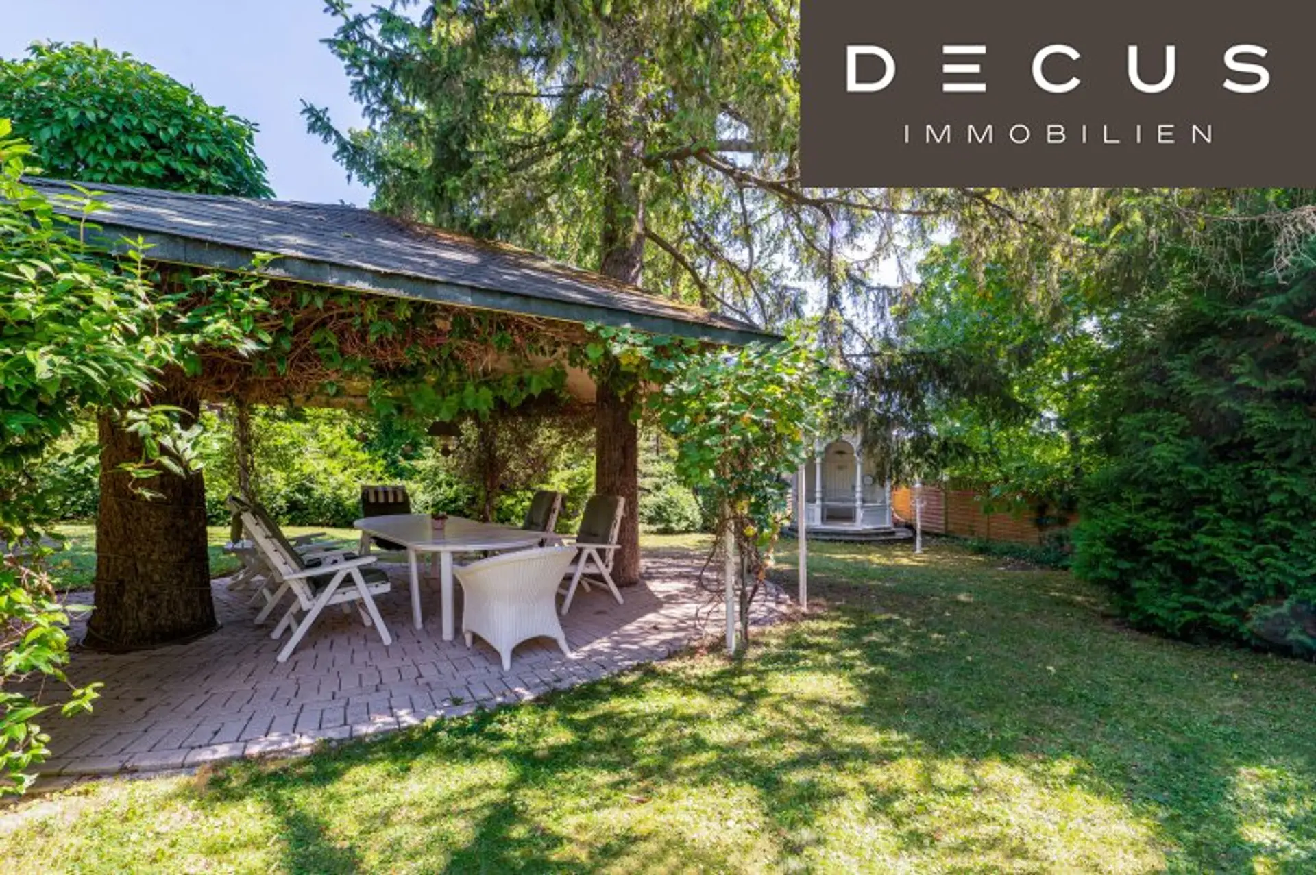 Die weitläufige Gartenfläche ist eine wahre Oase: großzügige Grünflächen mit altem Baumbestand, überdachte Terrassen für entspannte Stunden im Freien, ein Pavillon für Sommerabende, ein Grillplatz sowie ein Gartenhaus für praktischen Stauraum. Dieser Außenbereich vereint Naturidylle mit exklusiven Annehmlichkeiten und bietet vielfältige Gestaltungsmöglichkeiten.