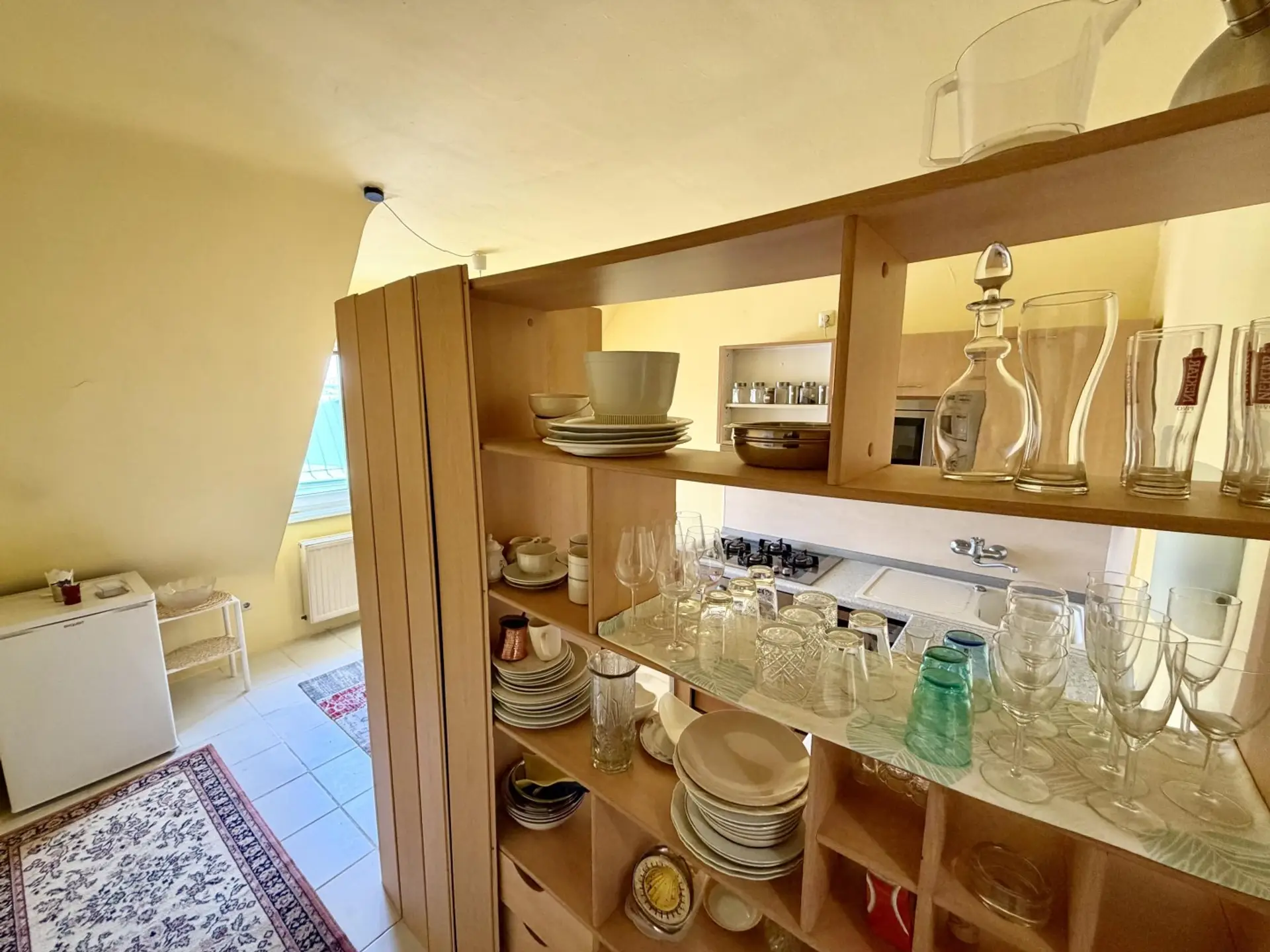 Die Beheizung erfolgt über eine Gasetagenheizung.