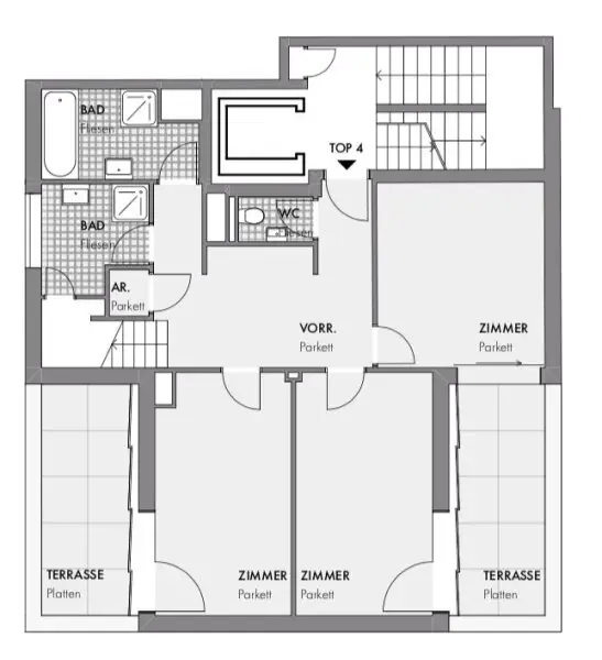 + 3 zentral begehbare Zimmer mit Terrassen