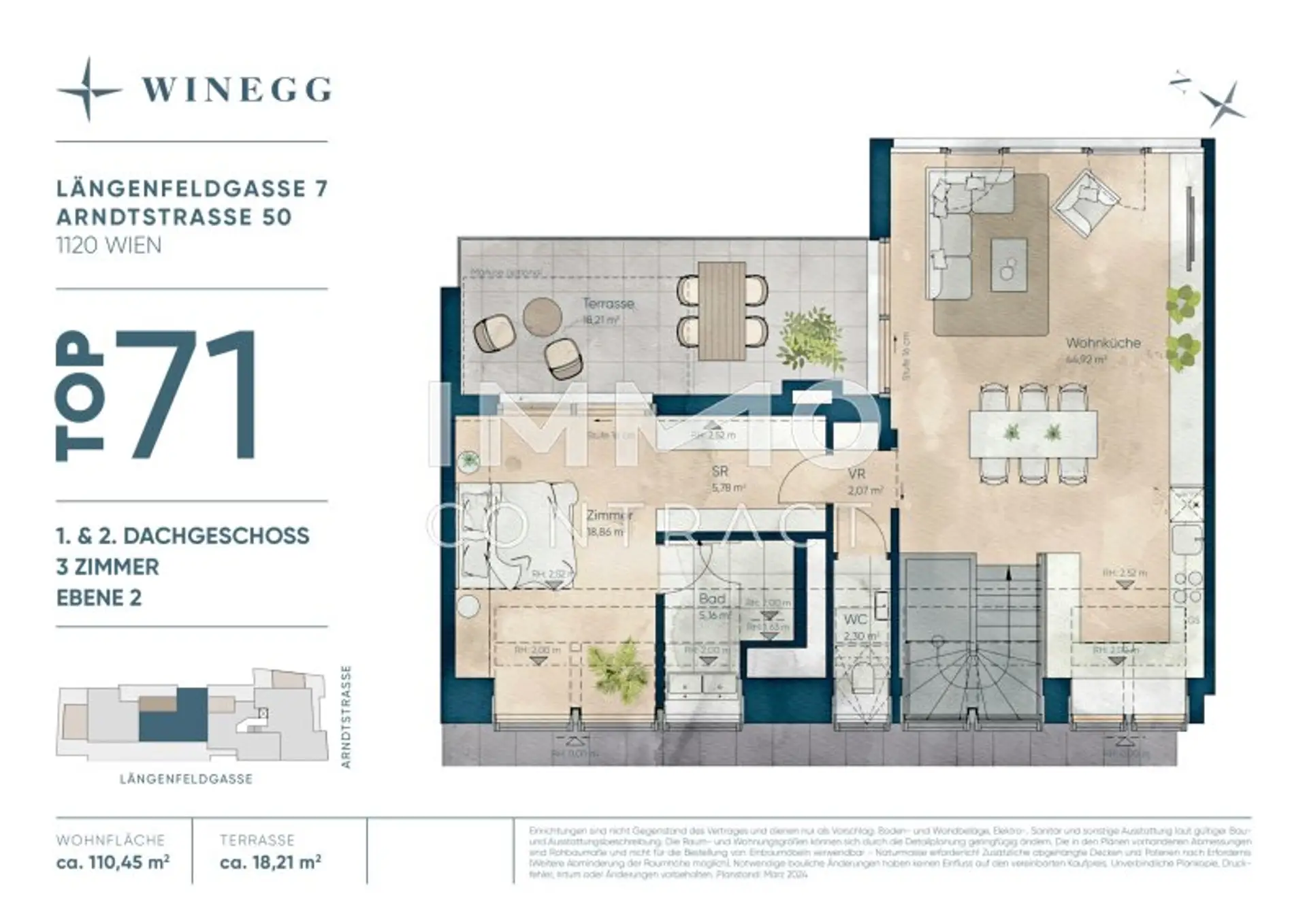 Das Projekt fügt sich harmonisch in die Bestandsbebauung der Umgebung ein und erfrischt durch seinen Auftritt die umliegende Mikrolage. Gleichzeitig vereint das Projekt die Ansprüche einer modernen und nachhaltigen Lebensweise unter seinem Dach und trägt mittels Vollwärmeschutz und modernster Energieannehmlichkeiten aktiv zum Klimaschutz bei.