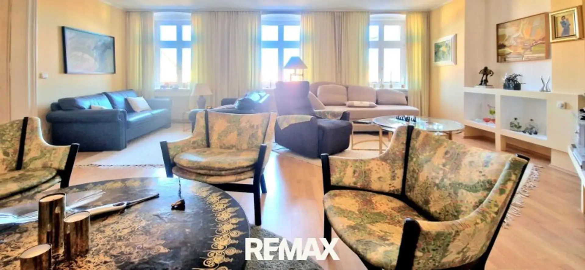 Durch die dortige Verbindungstür betreten Sie im Anschluss den sehr geschmackvoll und äusserst grosszügig eingerichteten Wohnsalon, mit mehreren verschiedenen Sitzgruppen.