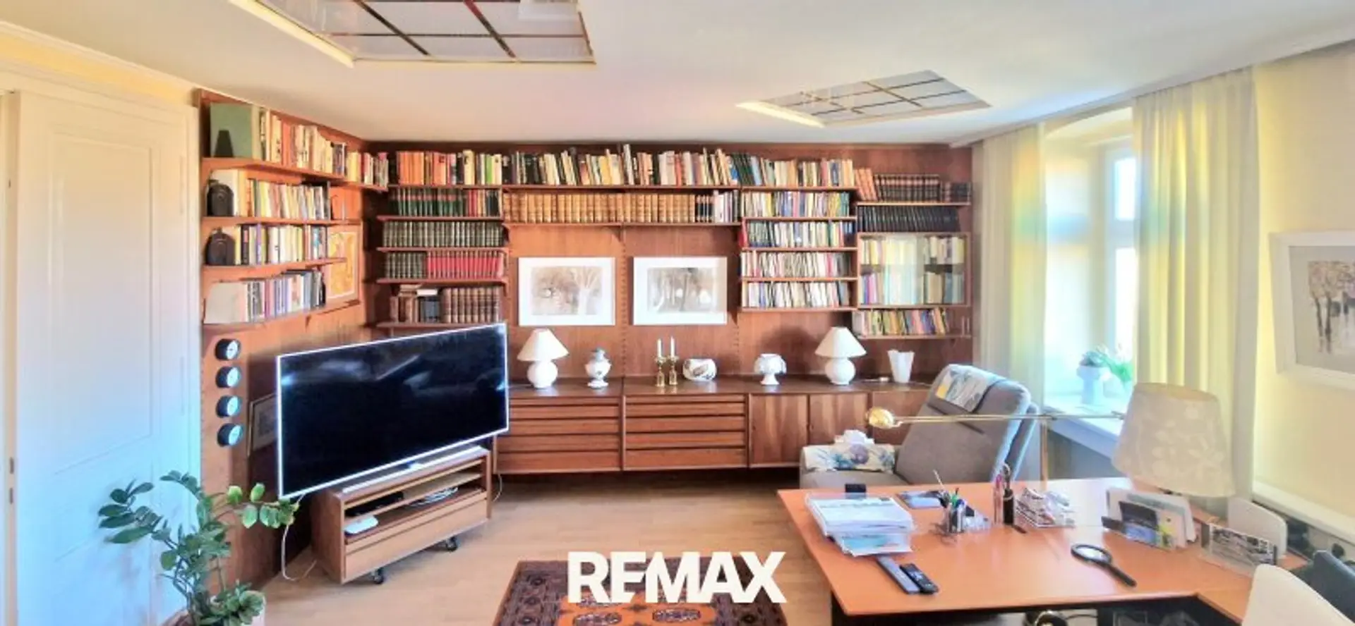 Über den Flur kommen Sie in das dzt. Lesezimmer und Büro, eingerichtet mit dänischen Designermöbeln.