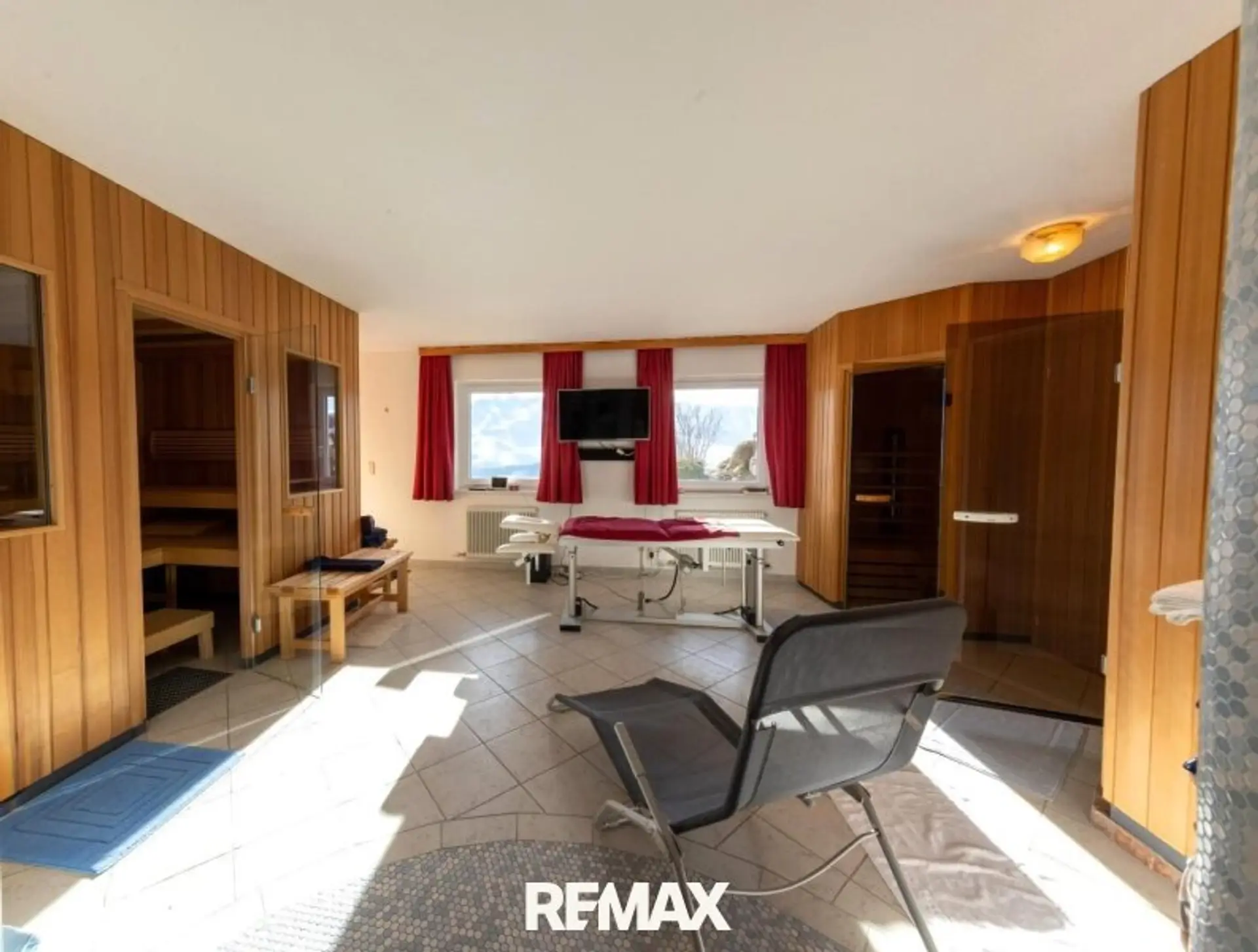 Highlights im Inneren: Knapp 90m² großes Fitnessstudio mit vielen, sehr hochwertigen mechanischen Geräten, Infrarotsauna, Dampf-und finnische Sauna, Solarium und ein Whirlpool mit der wohl schönsten Aussicht in die umliegende Bergwelt!