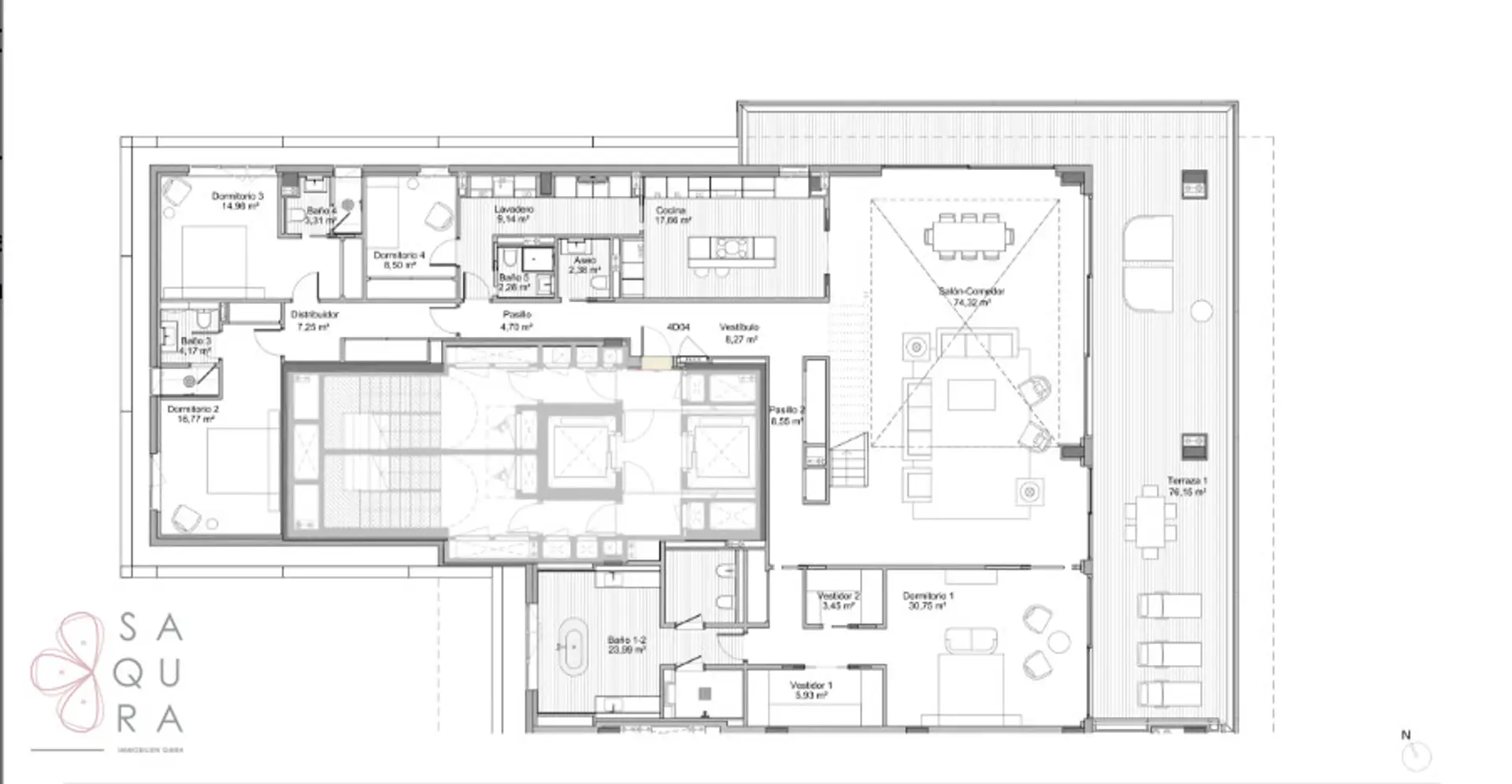 Designed by the acclaimed Estudio Lamela, this full-floor residence showcases modern elegance, expansive layouts and breathtaking panoramic views over the Mediterranean Sea, the city of Málaga and the surrounding mountains.
