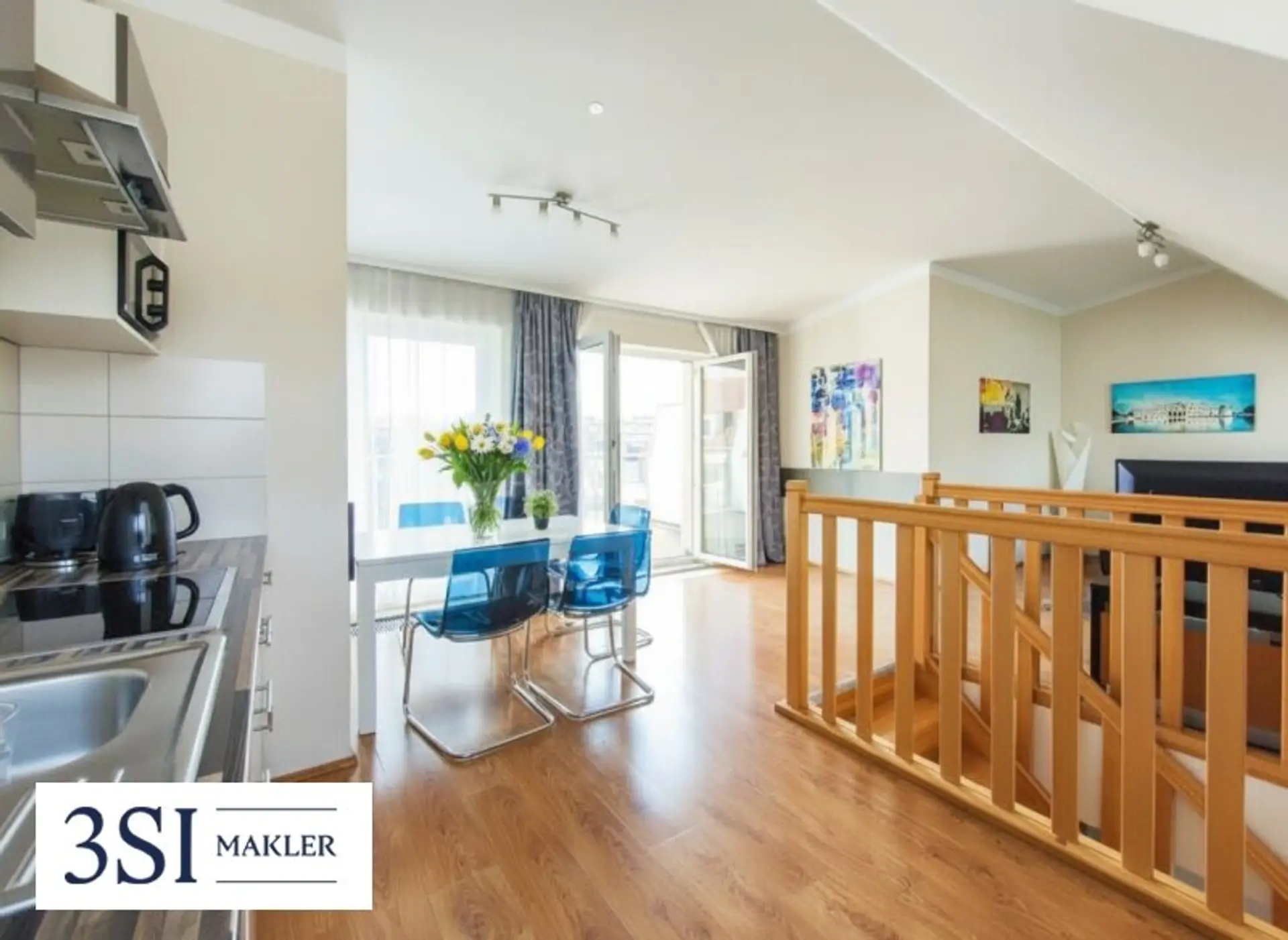 Diese möblierte DG-Maisonette mit 3 Zimmern und einer 16,27 m² großen Terrasse bietet auf rund 84,19 m² Wohnfläche eine und gut durchdachte Raumaufteilung: