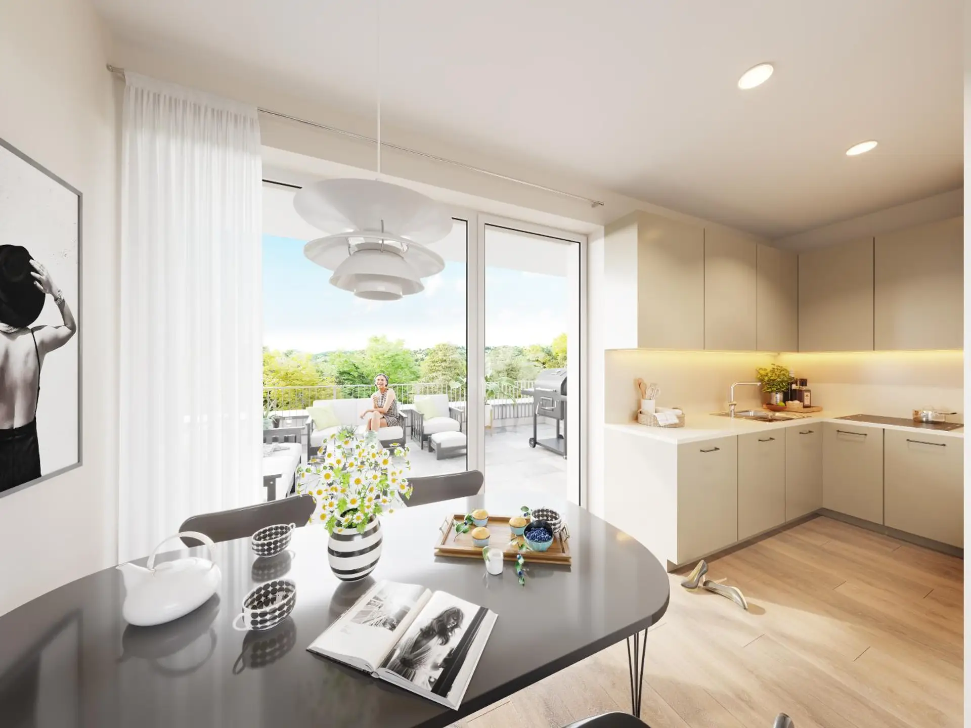 -ein großes Kochen/Wohnen/Essen mit Ausgang auf die fast 30 m2 große Terrasse, südwestseitig orientiert