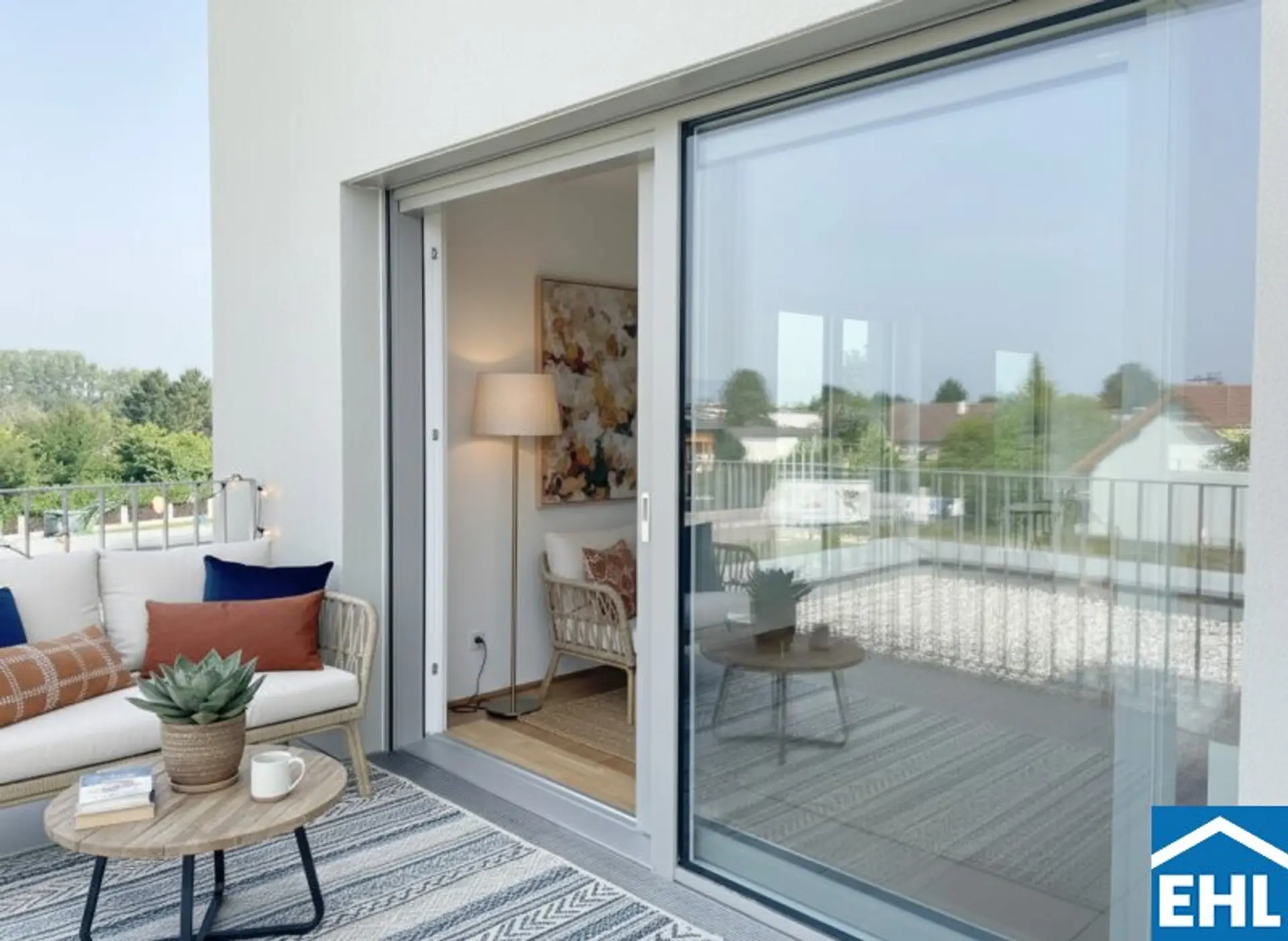Die Wohnungen bestechen durch ihre gelungene Balance aus kompaktem Design und hoher Alltagstauglichkeit. Mit bestens durchdachten Grundrissen und optimaler Raumaufteilung bieten die Wohneinheiten kompromisslosen Komfort und einen unkomplizierten, klaren Stil. Die Wohnungen im Erdgeschoss verwöhnen Sie mit Terrassen und Eigengärten, während die Wohnungen im ersten Stockwerk großzügige Balkone bieten. Die Penthousewohnungen sind der luxuriöse Höhepunkt des Neubaus und bieten zwischen 63 m² und 84 m² offen gestalteten Wohnraum sowie beeindruckende 30 m² große Terrassen. Hier erwarten Sie atemberaubende Panoramablicke und eine helle Atmosphäre mit Wohlfühlfaktor. Die großzügig gestalteten Räume lassen Raum für Ihre individuellen Wohnträume.