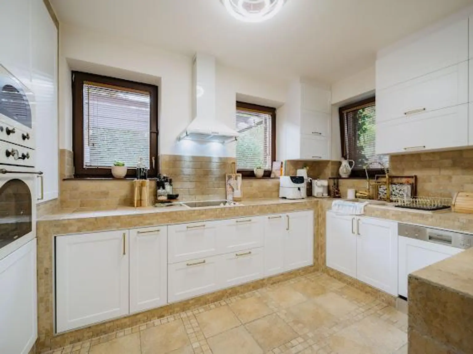 In begehrter Lage im Szent István Wohnviertel von Budakalász präsentiert sich diese außergewöhnliche mediterrane Villa auf einem großzügigen 1.350 m² parkähnlichen Grundstück. Mit einer Wohnfläche von 286,5 m² vereint die Immobilie südländisches Lebensgefühl mit modernster Technik und absoluter Privatsphäre.