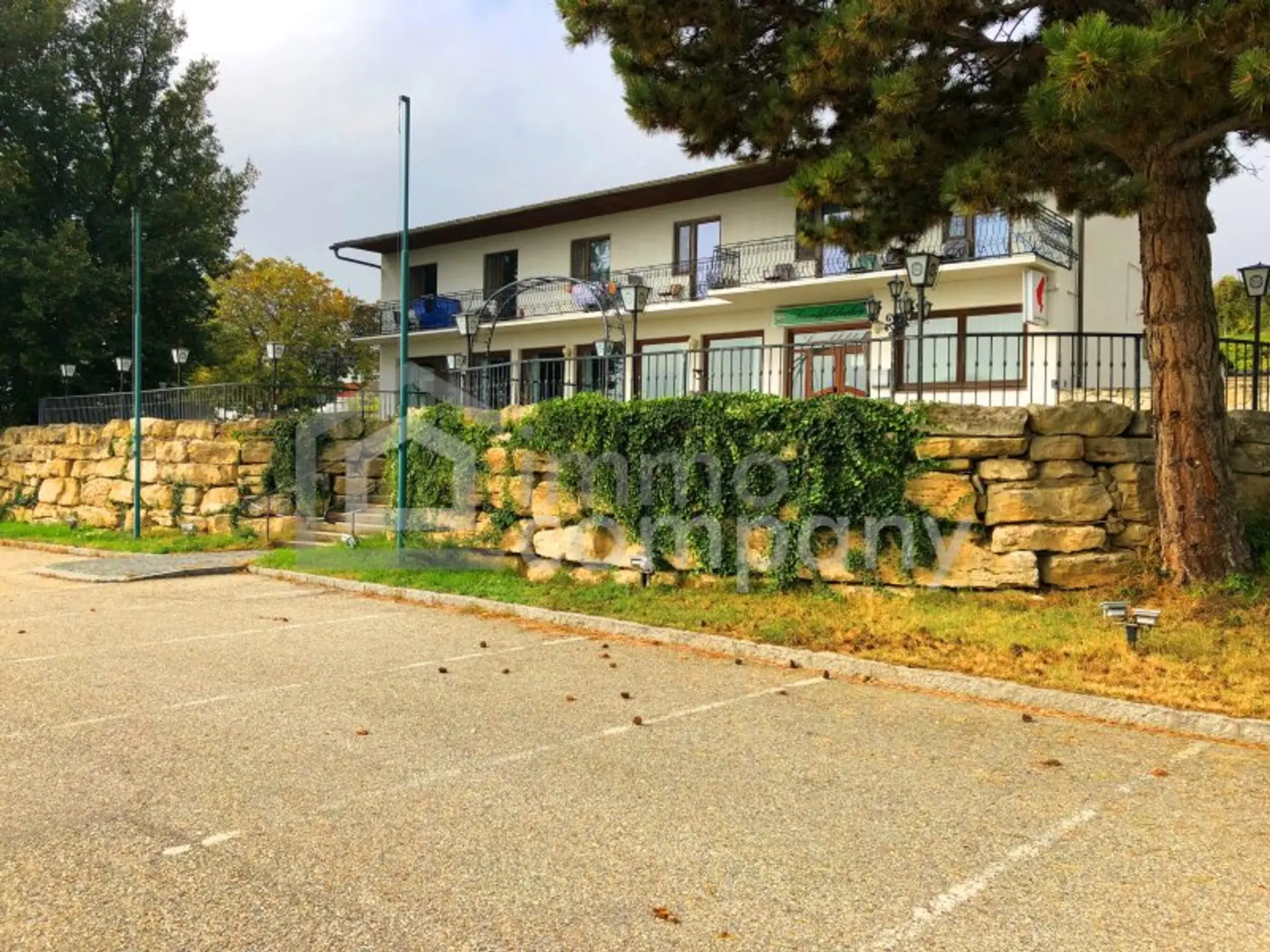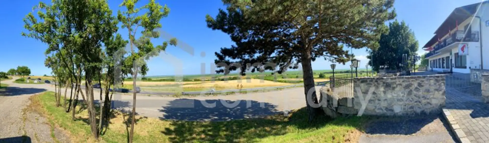 Das Hauptgebäude ist eine in ganzer Front nach Süden, dem Neusiedlersee zugewandte, weitläufige Restaurant-Hotelanlage, mit einer Nutzfläche von 913m² und 33m² Keller. Vorgelagert befindet sich ein langgestreckter Parkplatz, der über die parallel zur Hauptstraße verlaufende Nebenfahrbahn zu erreichen ist. Von diesem Parkplatz führen großzügig breite Naturstein-Stiegen hinauf zu einer vor dem Gebäude positionierten, prachtvoll großzügigen Terrasse, die die gesamte Front begleitet. Dahinter befindet sich mit großen Panoramafenstern der geborgene Gastraum.
