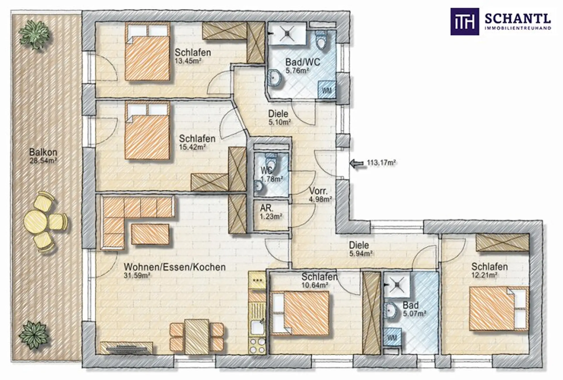 MEGA-Familienwohnung mit 4 Zimmern und zwei Bädern und Blick ins Grüne in einer ruhigen Sackstraße gelegen - 8041 Graz - PROVISIONSFREI!