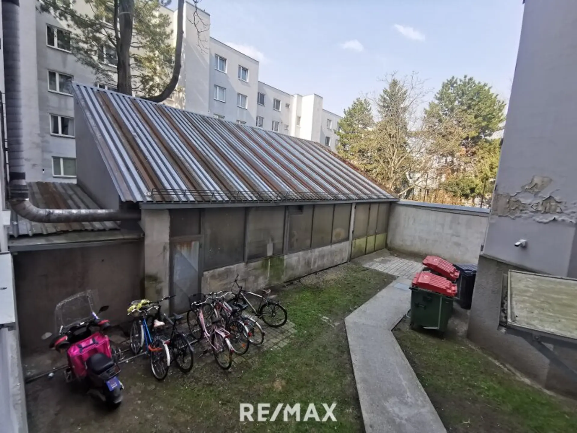 Eine Verbindung wäre prinzipiell möglich, wurde aber bislang noch nicht hergestellt. Büro/Wohnung ca. 40 m² groß. Mit Küche und WC.