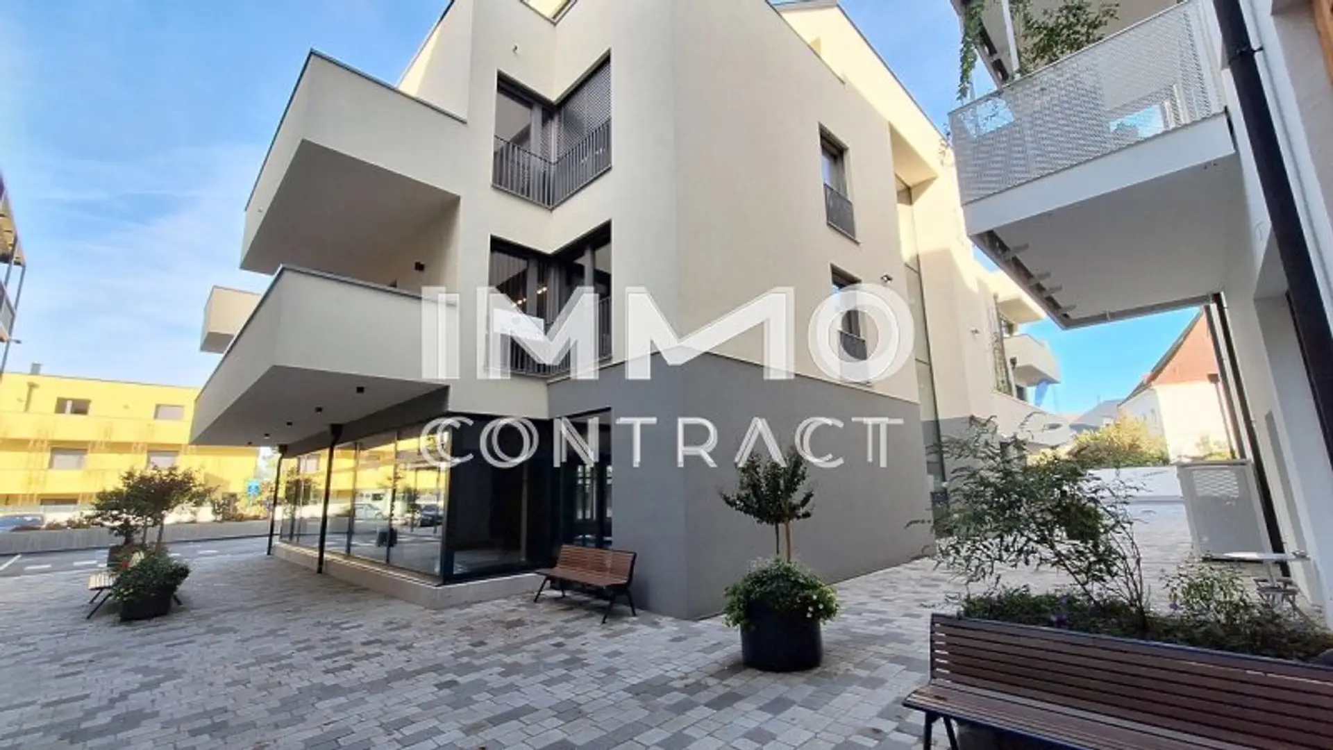 Die Wohnungen verfügen über hochwertige Ausstattung wie große Terrasse, Holz/Alu Fenster, Fahrstuhl, hochwertige Parkettböden, schneller Glasfasernetzwerk und Spielplatz, Garagenplatz gegen Mehrpreis.