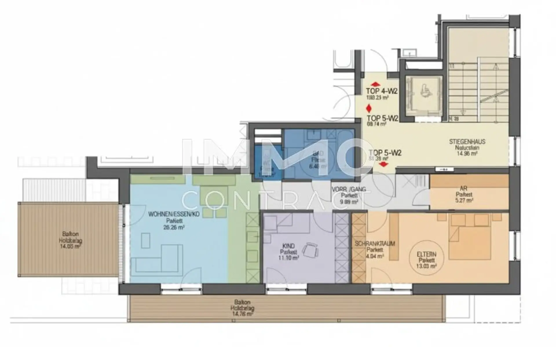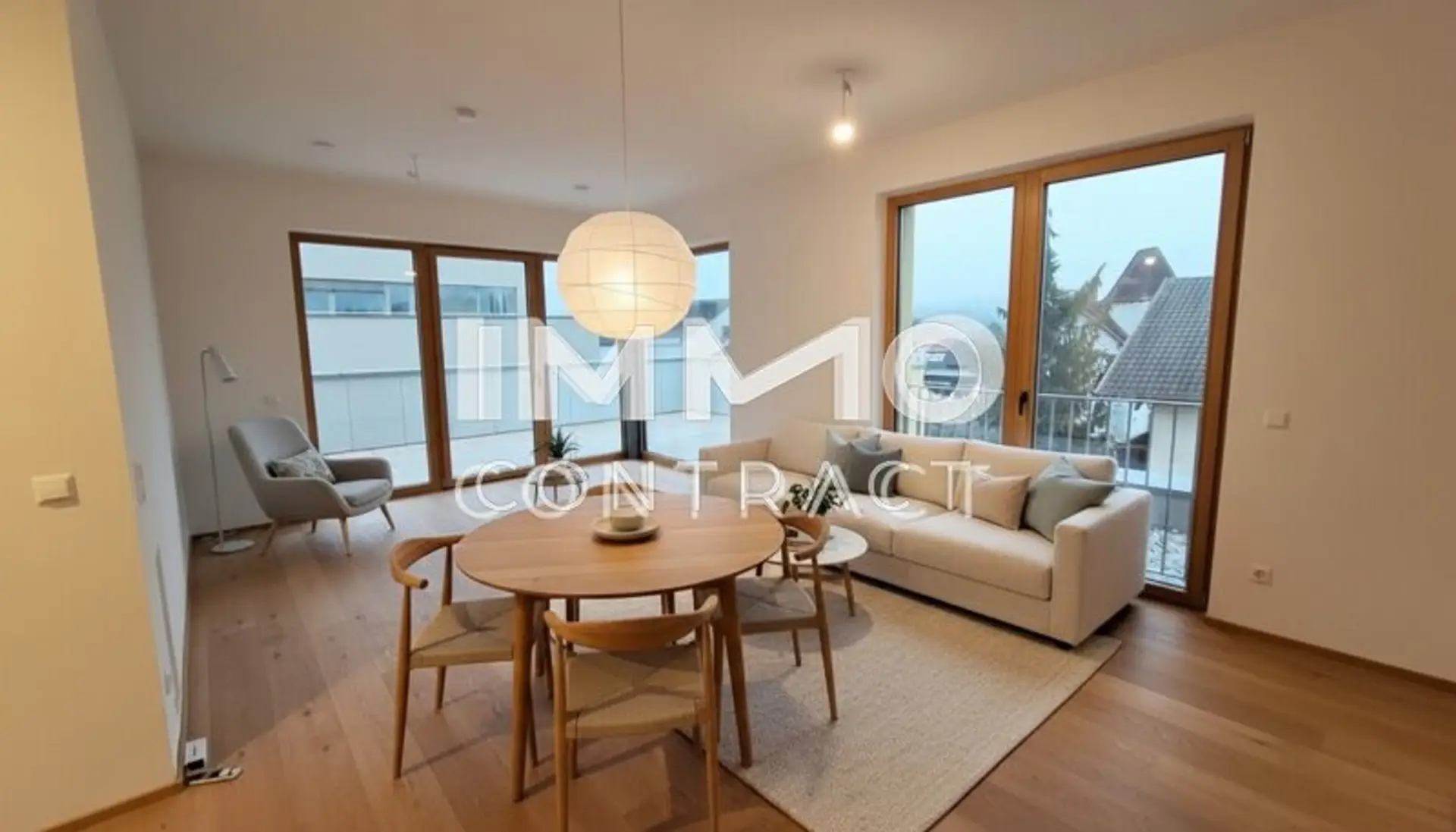 Die Wohnungen verfügen über hochwertige Ausstattung wie Balkon oder Terrasse, Holz/Alu Fenster, Fahrstuhl, hochwertige Parkettböden, schneller Glasfasernetzwerk und Spielplatz, Garagenplatz gegen Mehrpreis.