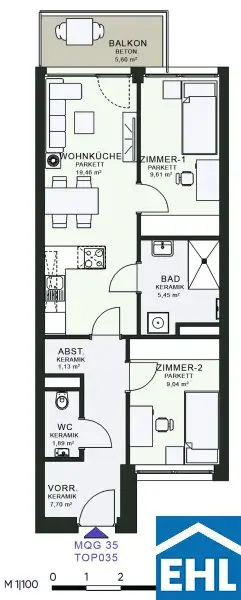 Wohnung zur Miete in 8010 Graz - Gesamtmiete: 814,08 € / Objektnummer: 96136