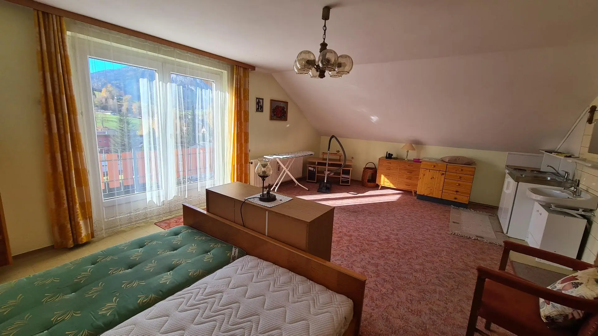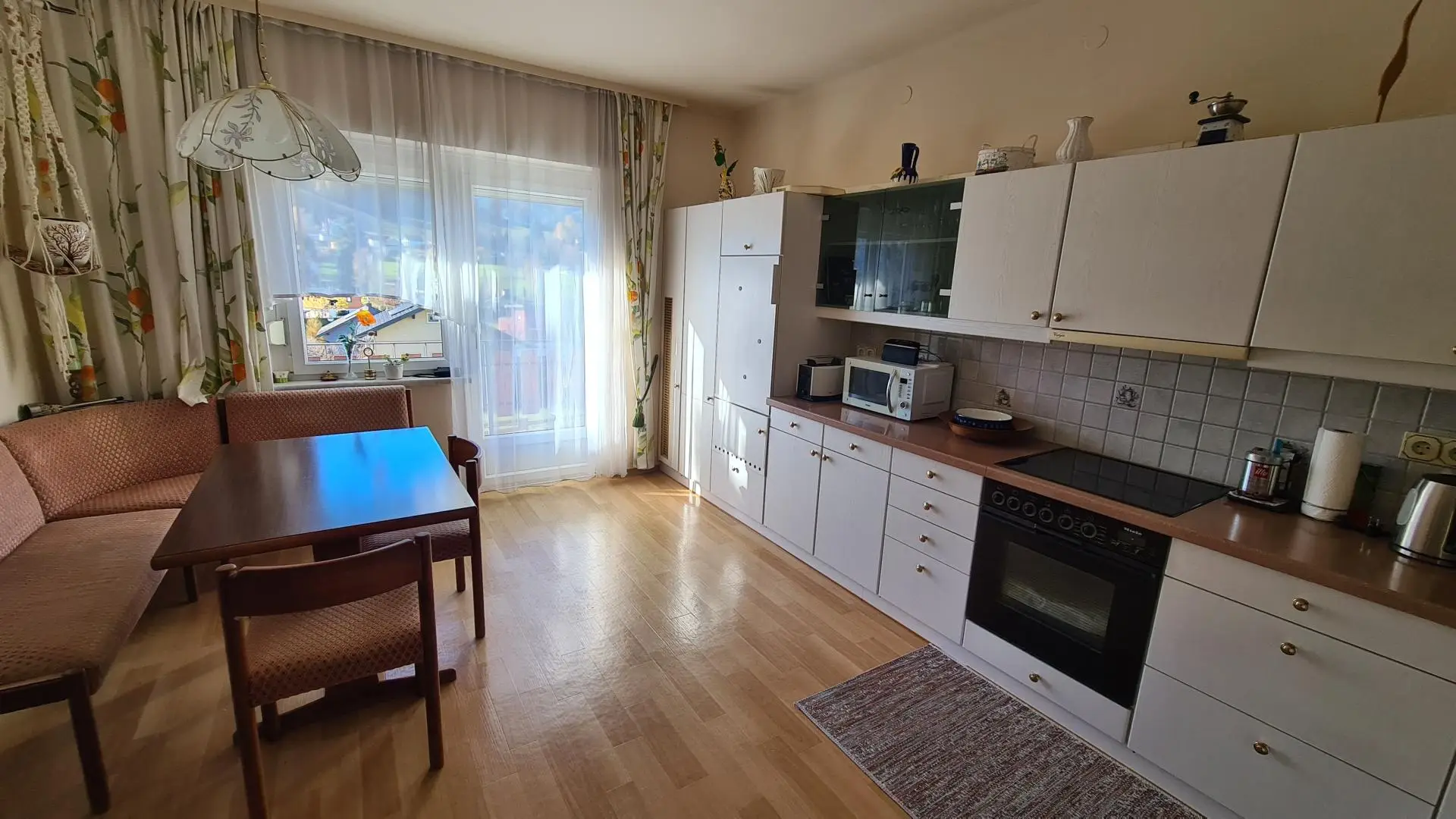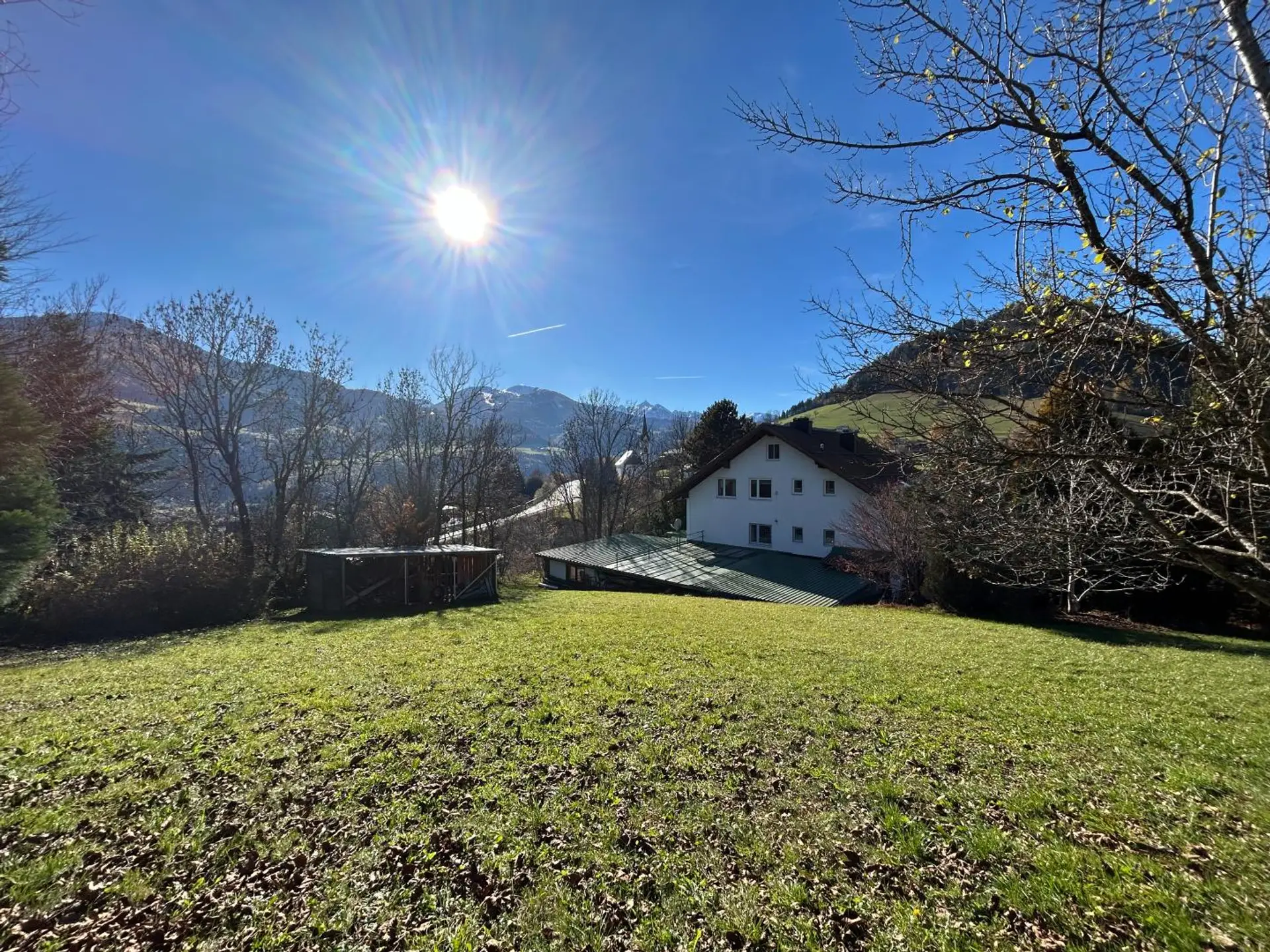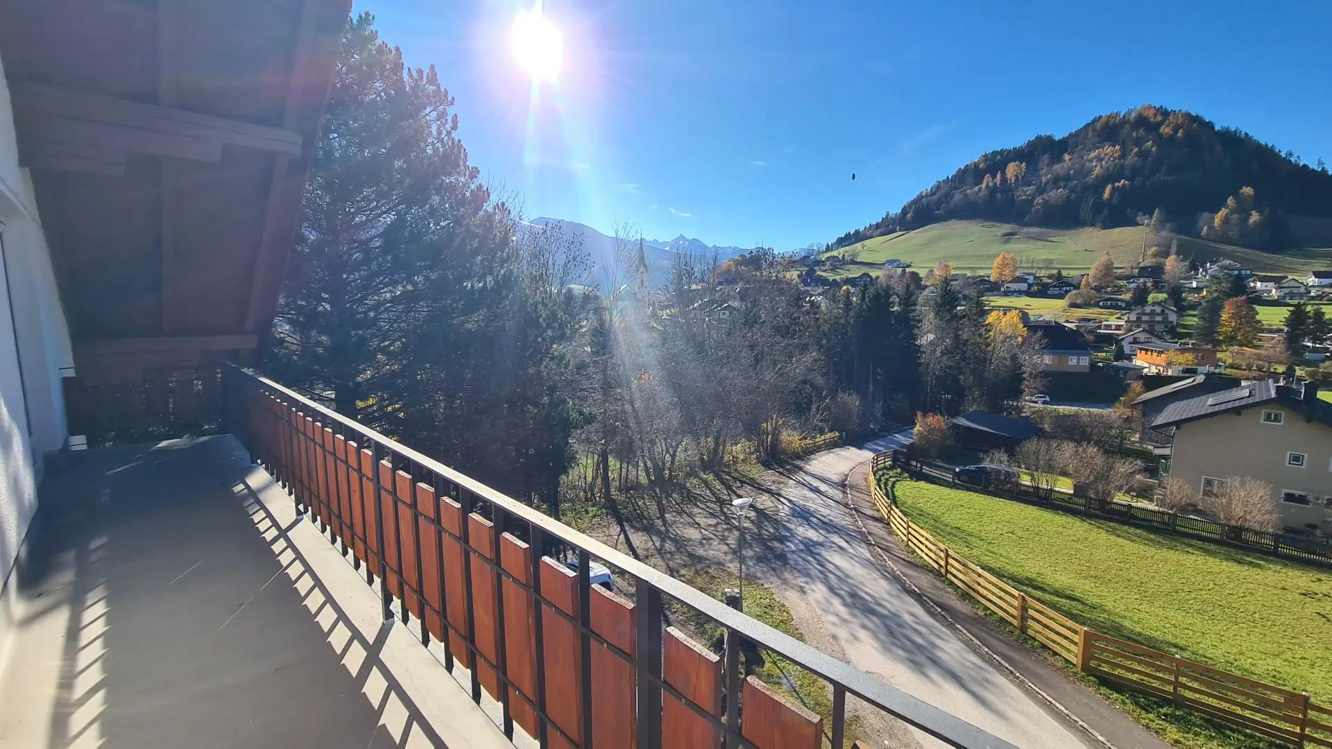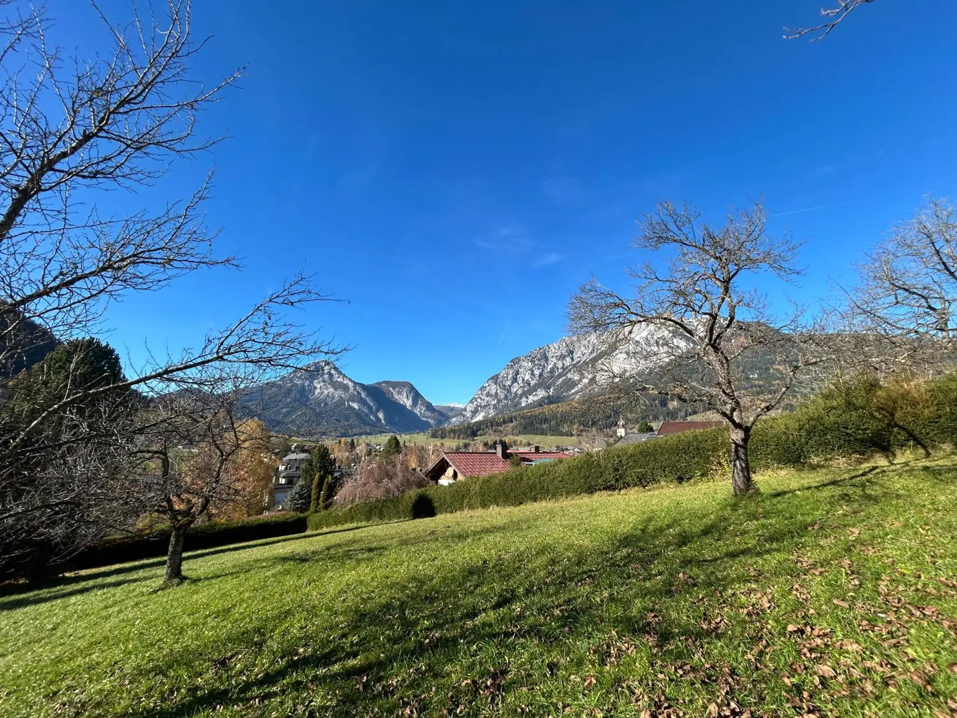 Ein besonderes Highlight ist die Sonnensituation: Durch die erhöhte Lage genießt man hier ganztägige Sonne, und speziell die Abendstunden tauchen das Haus in ein warmes Licht, während der Blick über den Ort bis zu den charakteristischen Berggipfeln von Stoderzinken und Kamm gleitet. Diese Aussicht ist nicht nur ein Anblick, sondern ein Gefühl – das Gefühl, angekommen zu sein.