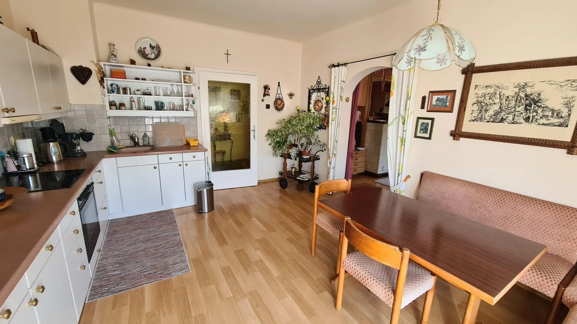 Hinzu kommen rund 210 m² gut verwendbare Nebenflächen, darunter geräumige Kellerbereiche, der Dachboden, drei Garagen sowie mehrere gemauerte Werkstatträume. Diese Struktur bietet ein breites Spektrum an Nutzungs- und Entwicklungsmöglichkeiten.
