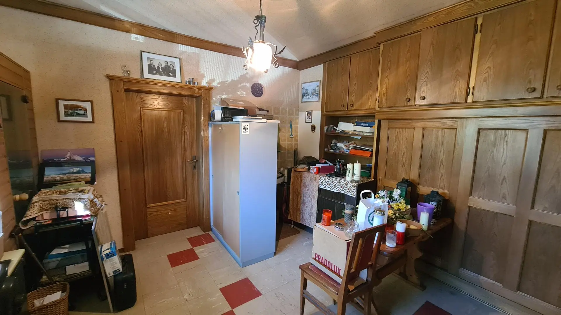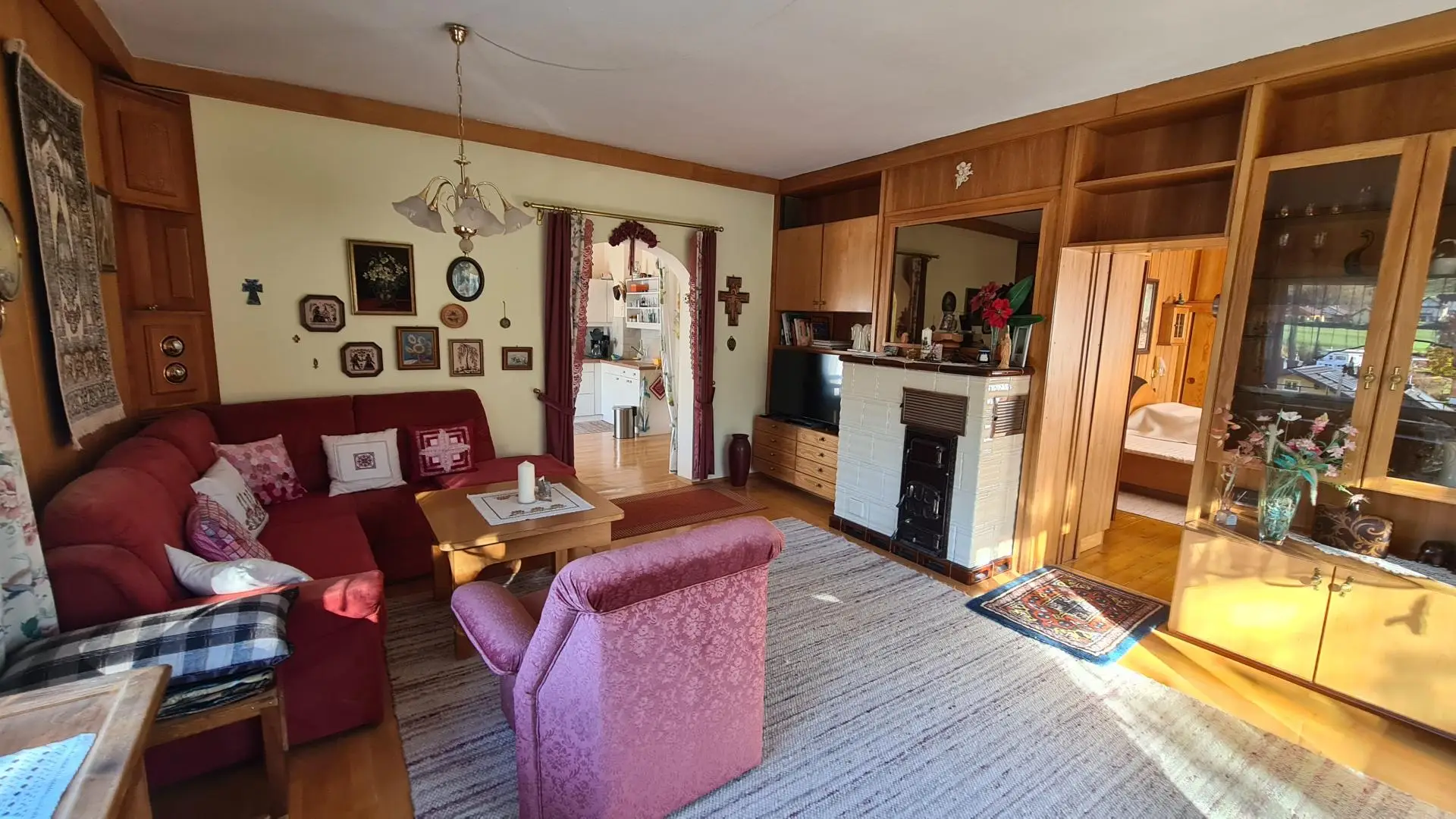 Zusätzlich zum Öl ist es auch möglich, die Zentralheizung mit Holz zu speisen, ferner gibt es Kachelöfen, um einzelne Wohnräume separat zu wärmen.