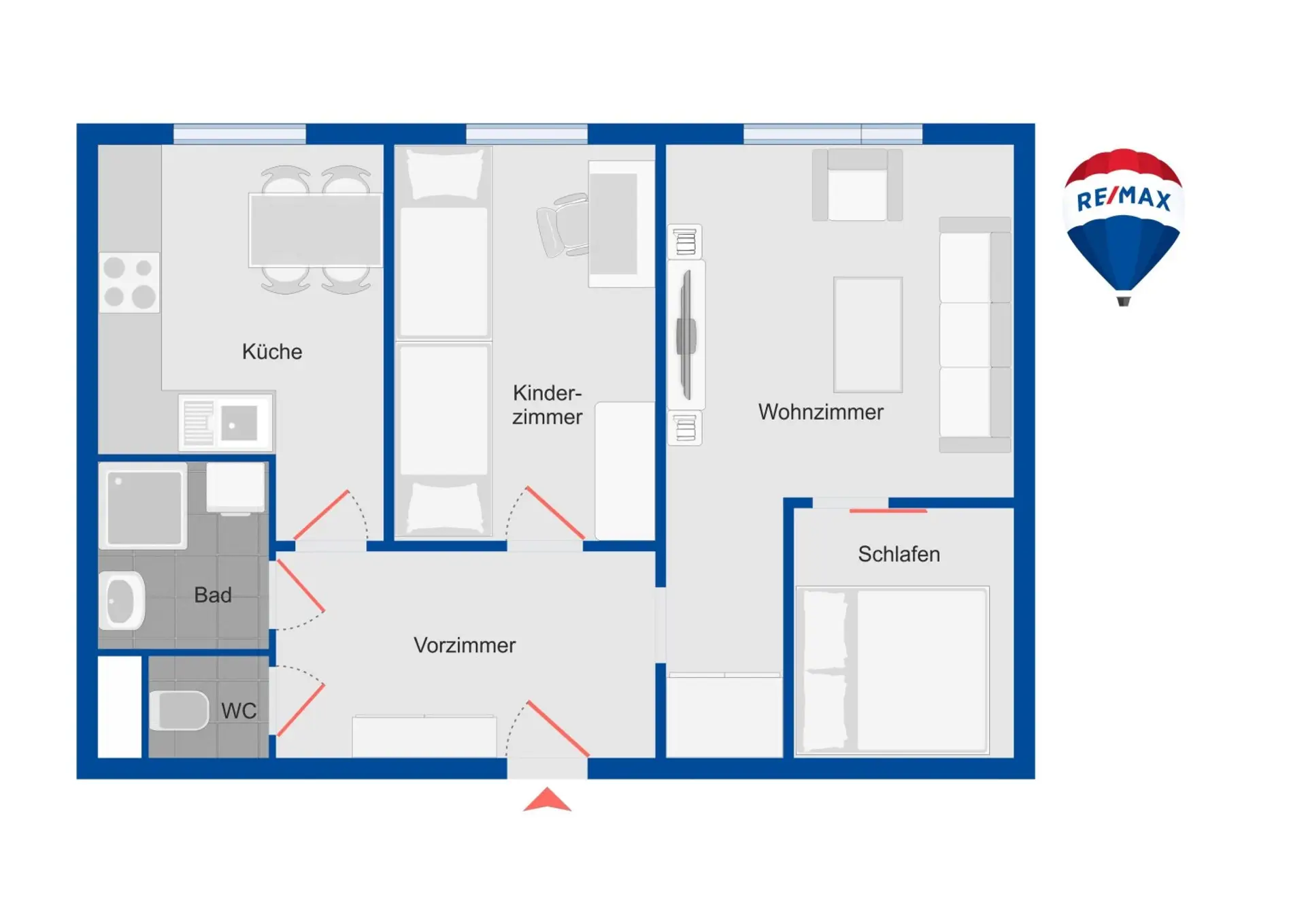 Die Wohnung präsentiert sich äußerst funktional und lichtdurchflutet. Vom zentralen Vorzimmer aus sind alle Räumlichkeiten separat begehbar, was den Wohnkomfort deutlich erhöht.