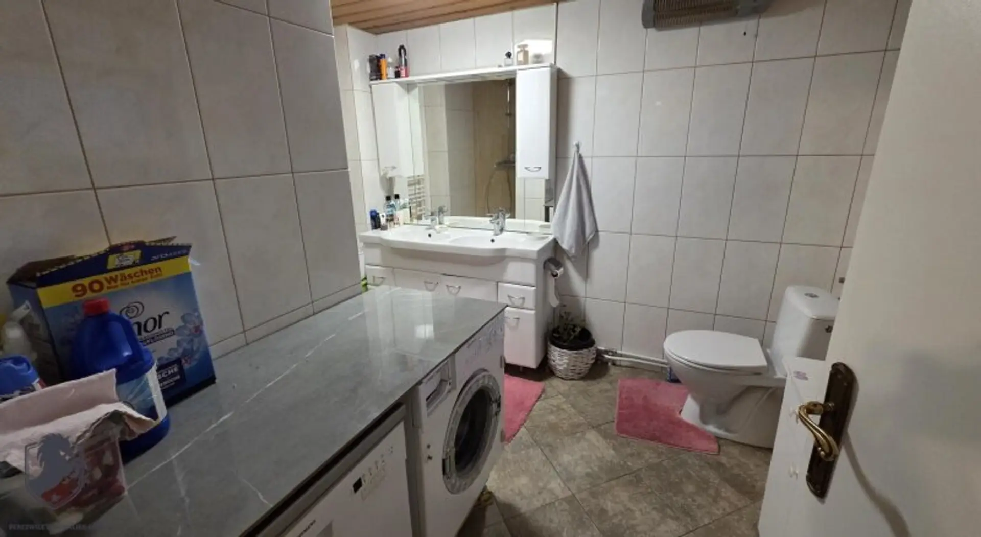 Badezimmer mit Dusche, WC und Waschmaschinenanschluss