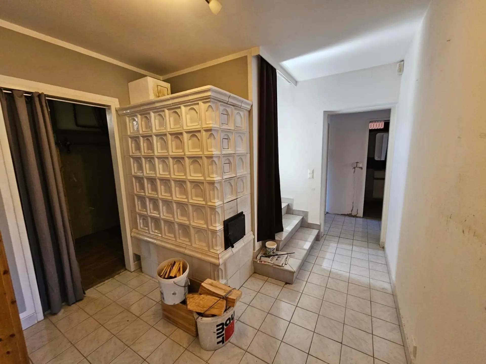 Das Haus wird über zwei Kachelöfen und einen Küchenofen mit Holz geheizt. Teilweise elektrische Fußbodenheizung im Haus.