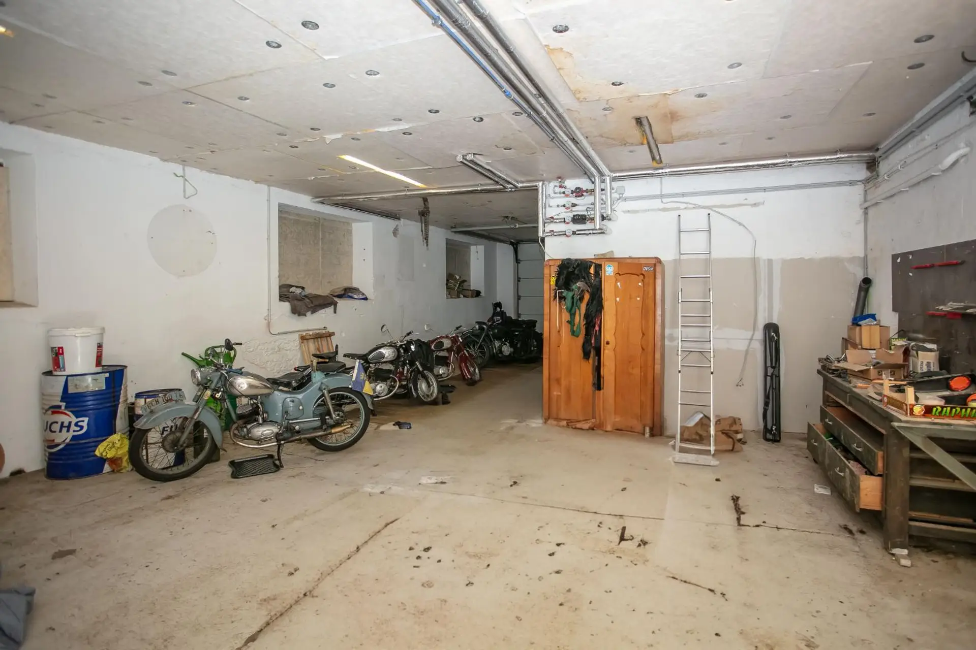 Eingebettet in einem ca. 678 m² großen Grundstück bietet diese Liegenschaft als Basis zwei separat begehbare Wohneinheiten (OG/DG und OG), ein Erdgeschoß mit diversen Zimmern, Lagerräumen und großer Garage sowie ein Nebengebäude mit Garagen, Schuppen und Lagerräumen.