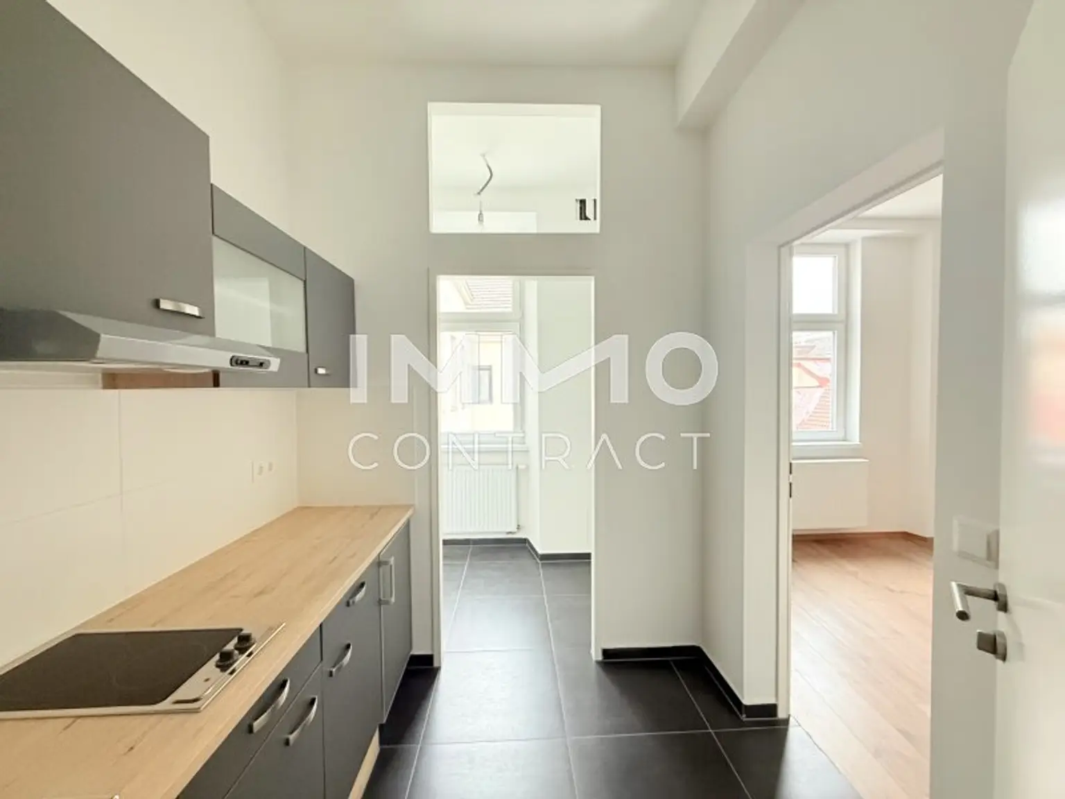 Ein Vorraum, eine neue, moderne Küche, ein Badezimmer mit Dusche und WC sowie ein clever geschnittenes Schlaf-Wohnzimmer bieten dir alles, was du brauchst – nicht mehr und nicht weniger. Genau richtig für deinen Start.
