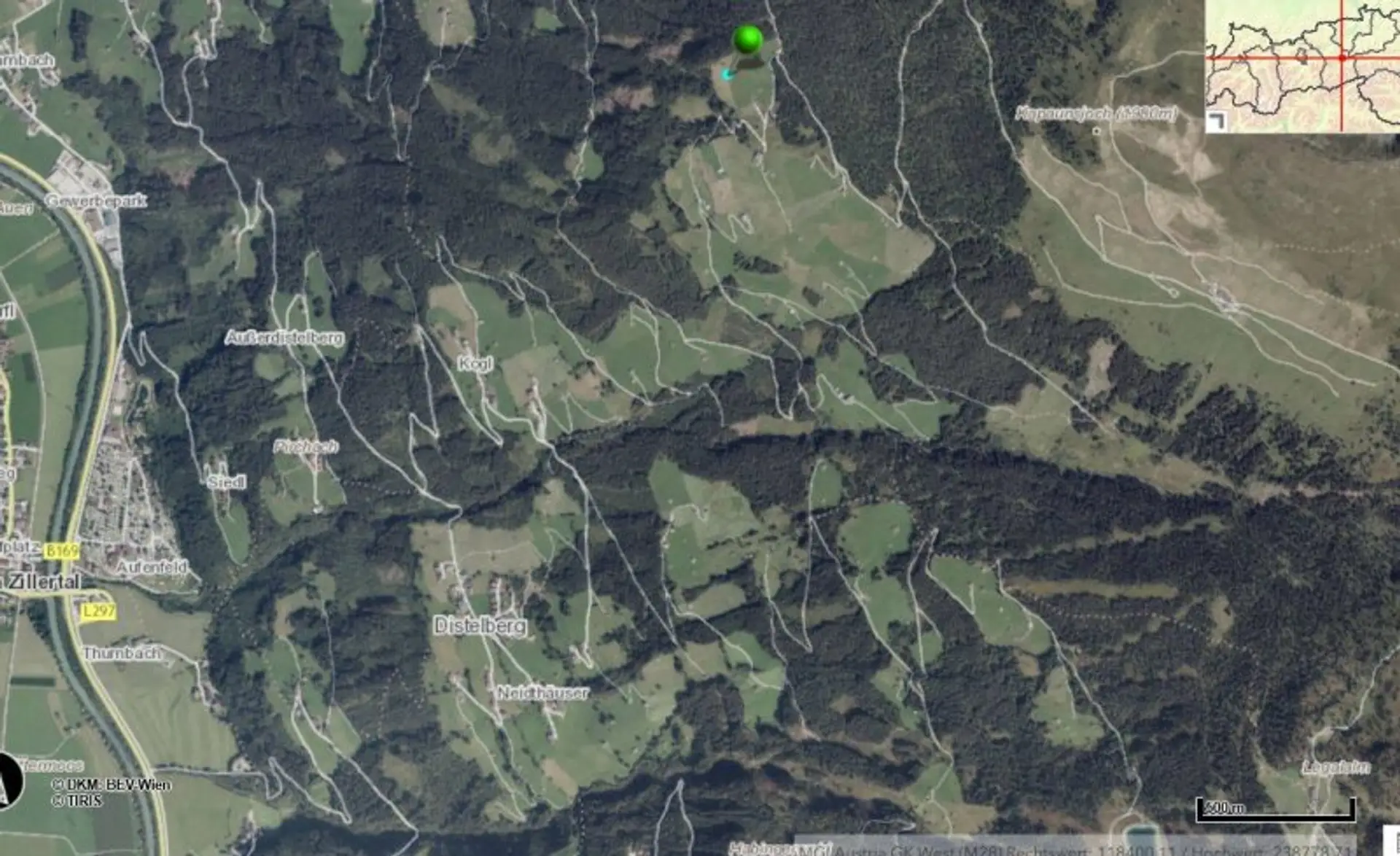 Die Zufahrt bis ca. 100m unterhalb ist gut ausbegaut. Mit einem geländegängigeren Fahrzeug ist eine direkte Zufahrt jedoch möglich.