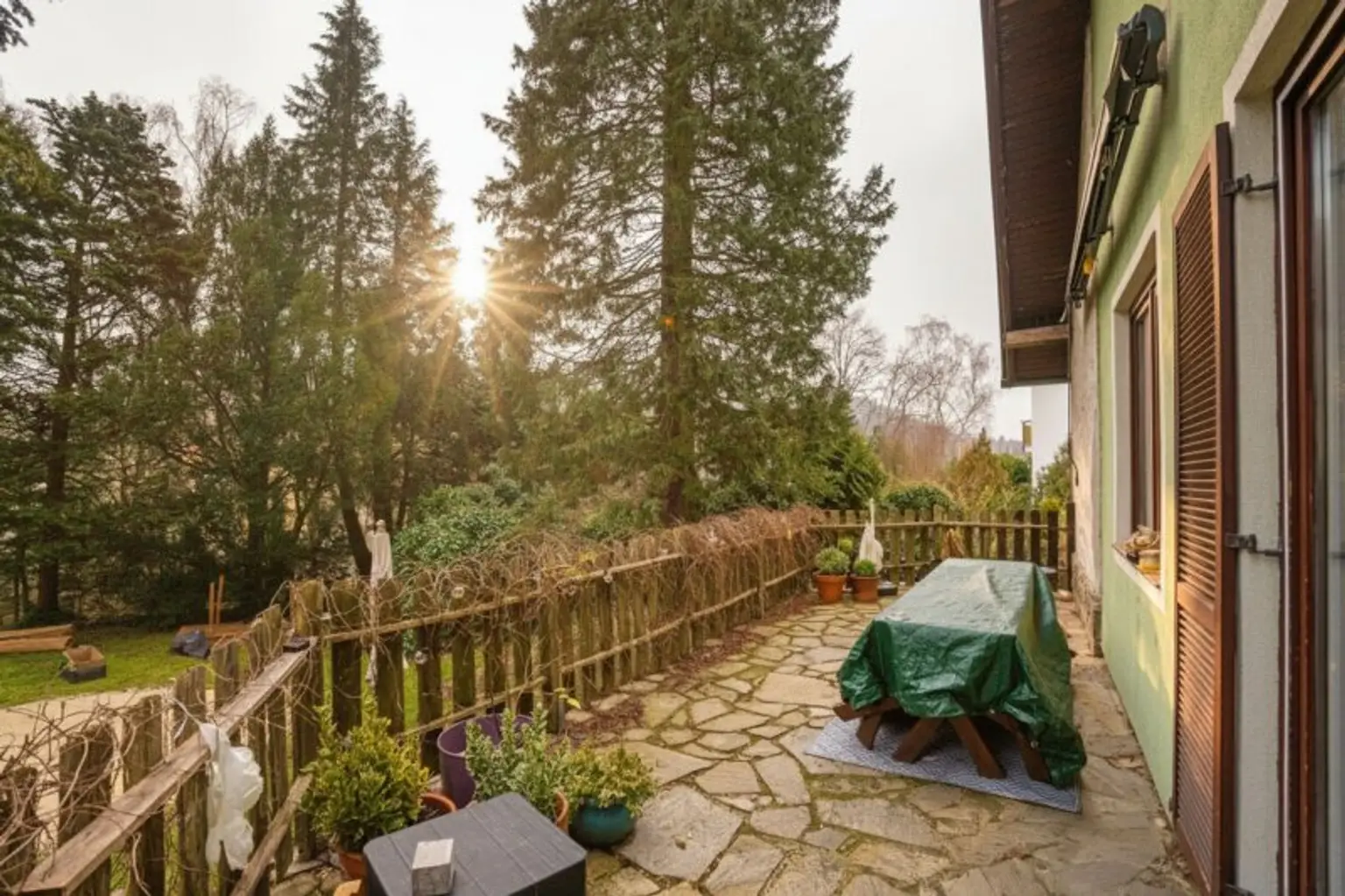 Dieses Einfamilienhaus wurde 1958 erbaut und liegt in zentraler, aber ruhiger Wohnlage im Zentrum von Pressbaum. Das Haus bietet rund 130 m² Wohnfläche, verteilt auf Erd‑ und Dachgeschoß. Zusätzlich gibt es einen Hobby‑ bzw. Partykeller mit Sauna. Das Grundstück ist mit fast 1.000 m² sehr großzügig und verfügt über einen großen Garten mit Altbaum- und Strauchbestand.