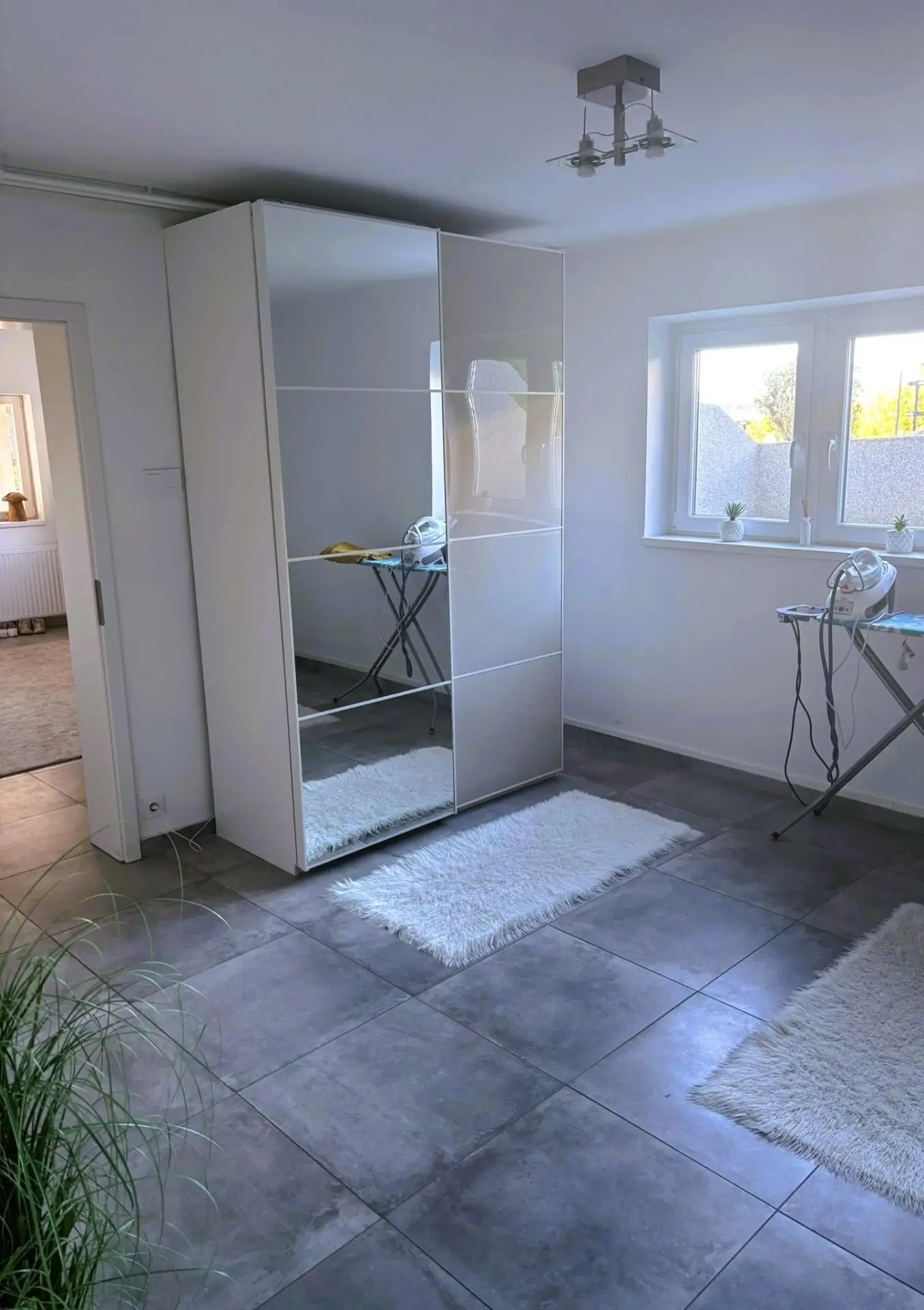 Erdgeschoß: 2 Zimmer, Badezimmer mit Dusche und WC, offene Wohnküche mit Terrassenzugang