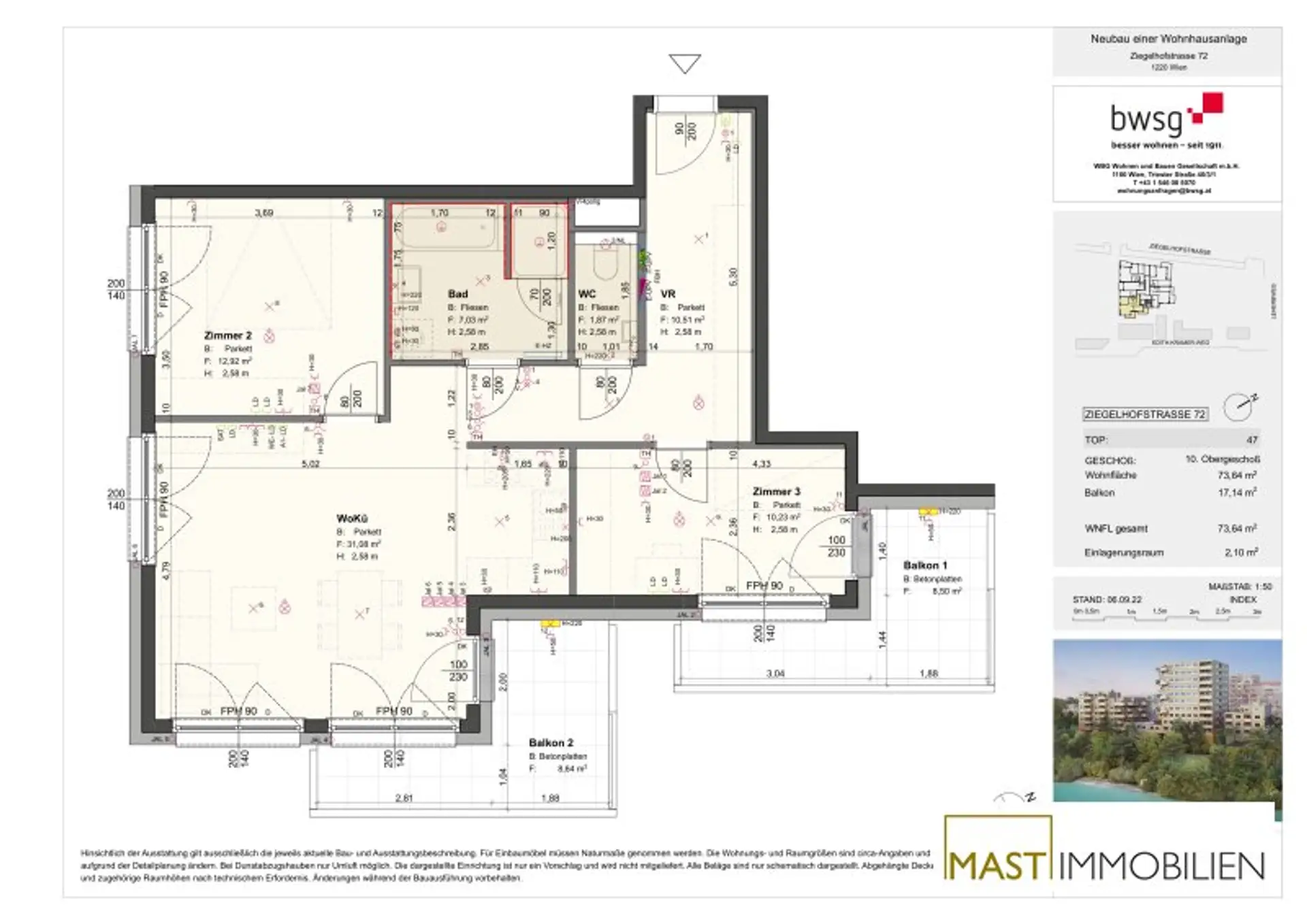 Details Wohnung Ziegelhofstraße 72 Top 47: