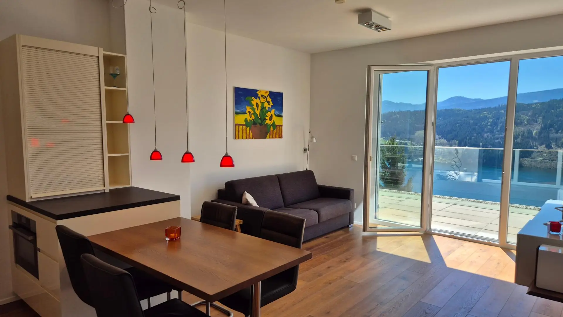 Willkommen in Ihrer Traumwohnung in Millstatt am Millstätter See! Diese wunderschöne, komplett eingerichtete 2-Zimmer-Wohnung in bester Aussichtlage bietet auf ca. 52 Quadratmetern ein modernes und gepflegtes Zuhause. Die Wohnung, ist in nahezu neuwertigem Zustand und umfasst einen Wohnbereich samt integrierter Küche., ein Schlafzimmer mit Balkonzugang, ein großzügiges Badezimmer mit Dusche und Badewanne, ein separates WC, einen praktischen Abstellraum und einen beeindruckenden Balkon mit ca. 29 Quadratmetern samt elektrischer Markise. Der Blick von hier aus ist einfach einmalig – Sie sehen das Stift Millstatt, das Zentrum und weite Teile des Millstätter Sees.