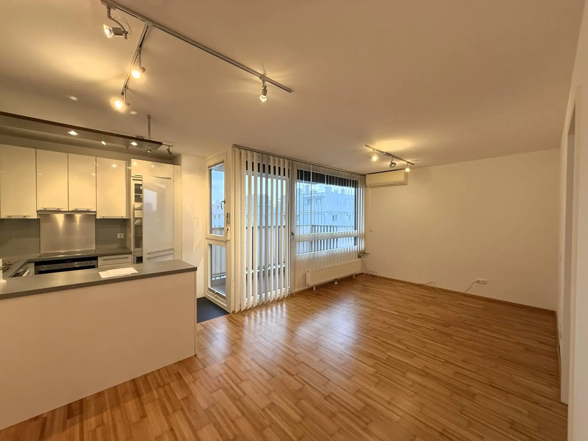 subway station, this air-conditioned 2-room apartment on the sixth floor with elevator is available for a fixed-term lease of initially 5 years in a modern and new district of Vienna.