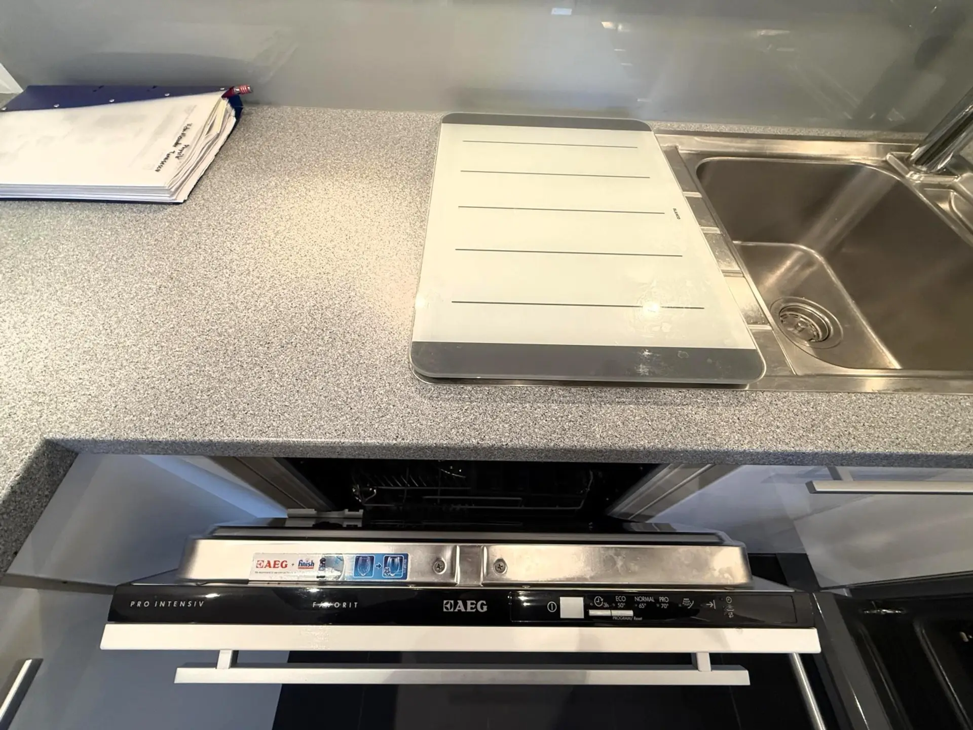Fitted kitchen including all Siemens appliances, which are built-in: microwave, oven, induction hob, refrigerator/freezer, dishwasher, extractor fan, worktop lighting, interior blinds