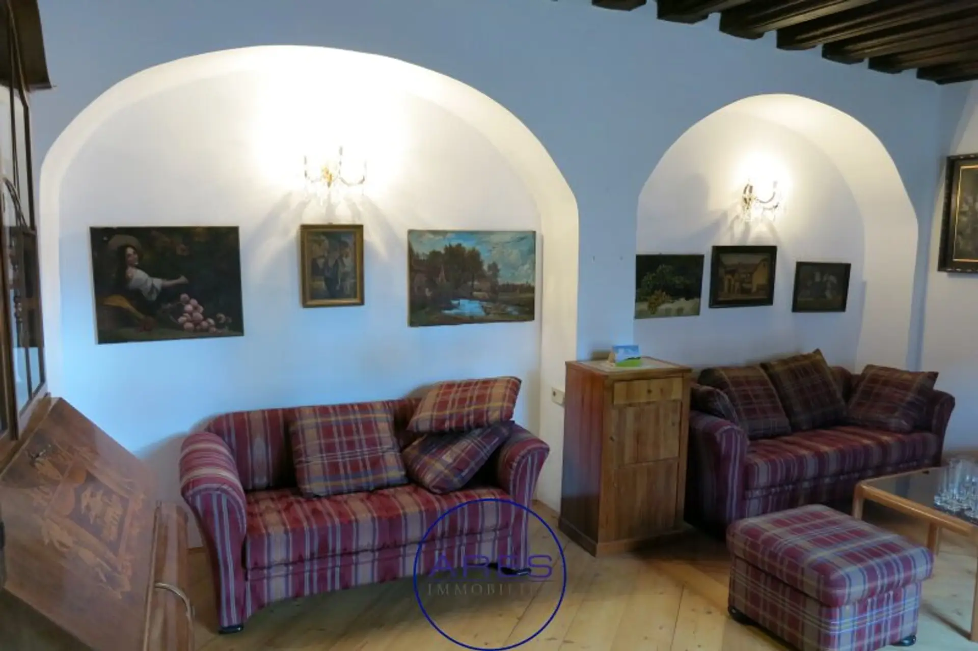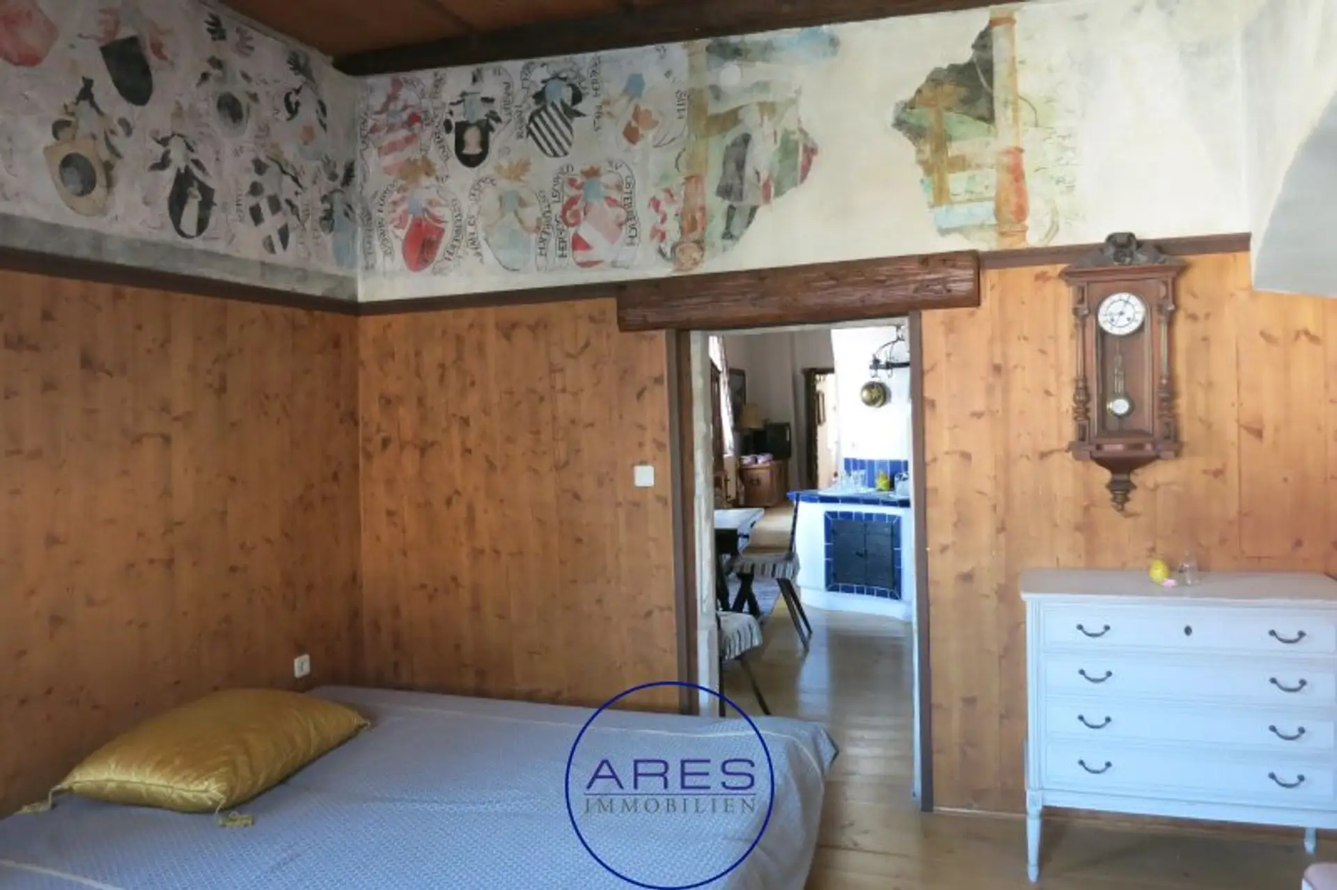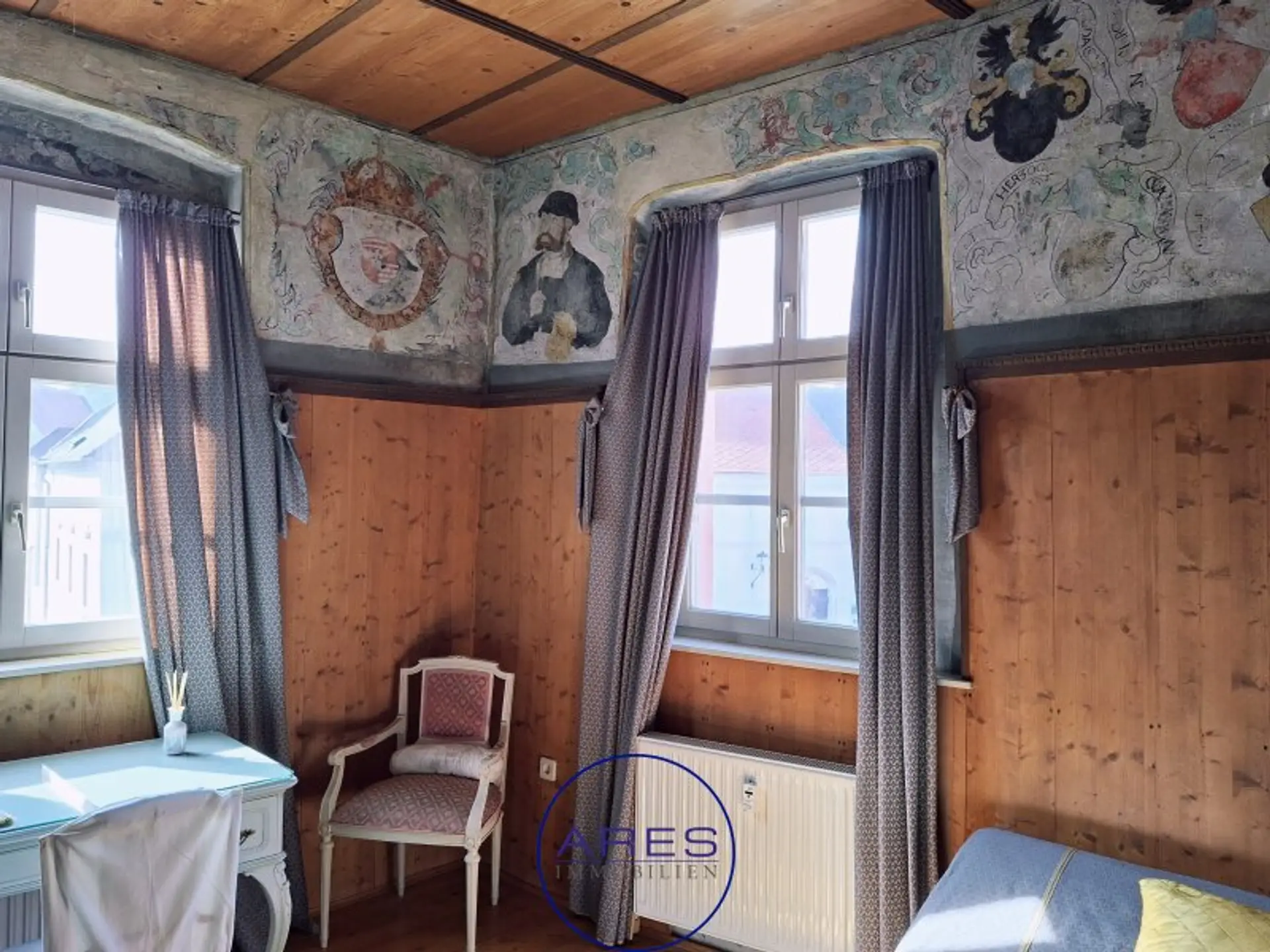 Mit viel Liebe zum Detail und Bedachtnahme auf die Erhaltung historischer Elemente wurde die Wohnung Mitte der 1990er Jahre generalsaniert. Alte Malereien, antike Holzdecken und Nischen mit Rundbögen zeichnen dieses Schmuckstück aus.