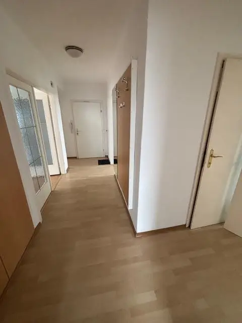 Die Wohnung befindet sich im 1.OG und ist mit dem Lift bequem erreichbar. Über den Vorraum gelangt man links in die Küche (mit Speis) und rechts in das große Zimmer 3. Danach kommt das Wohn- bzw. Schlafzimmer mit Balkon. Die weiteren Räume wie Zimmer 1, Zimmer 2, Bad, WC sind ebenfalls vom geräumigen Vorraum begehbar. Die Küche ist neu errichten. Die Anschlüsse für E-Herd, Geschirrspüler und Kühlschrank sind vorhanden. Sämtliche Räume sind vom Vorraum begehbar!