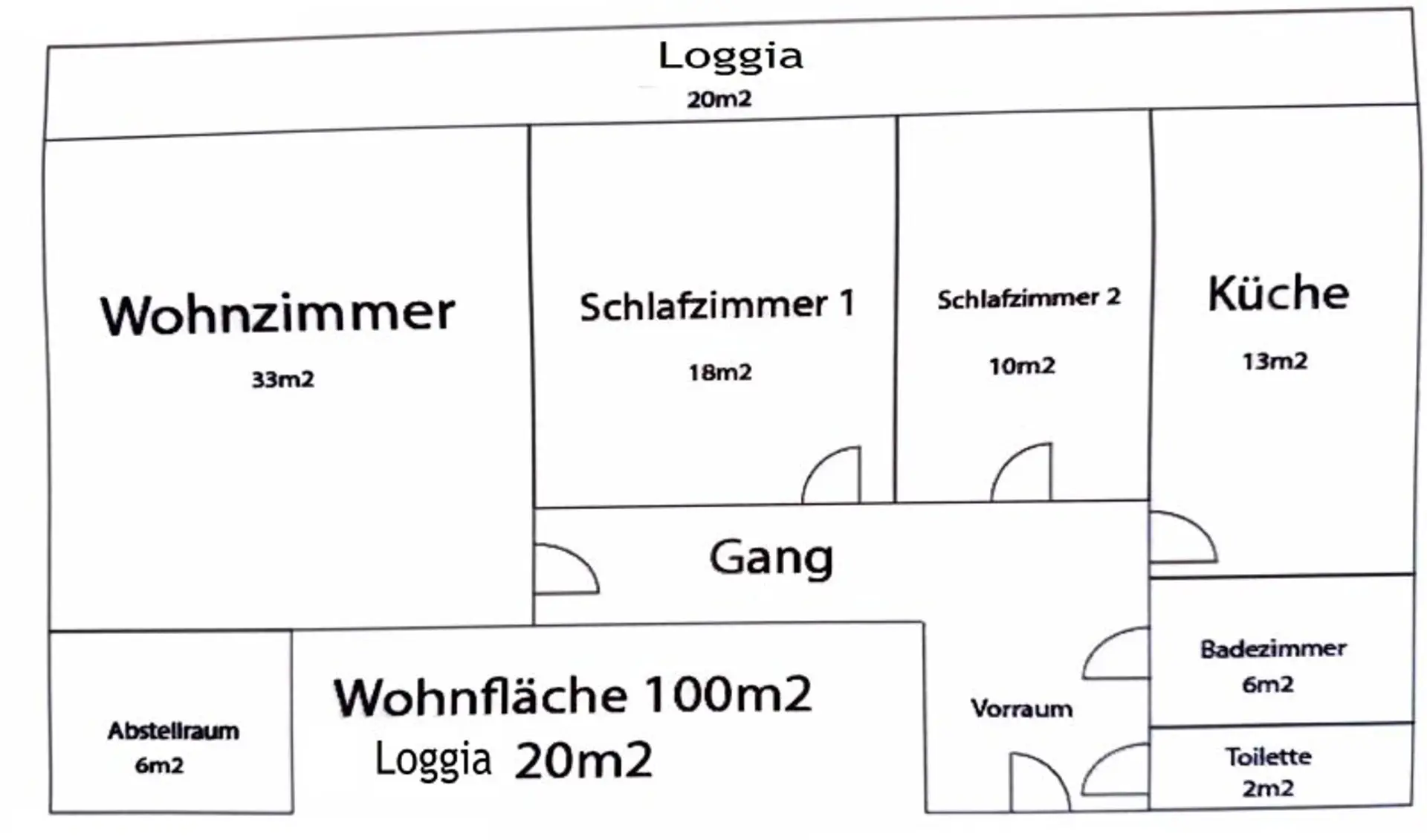 Zugang zur Loggia vom Wohnzimmer und Schlafzimmer;