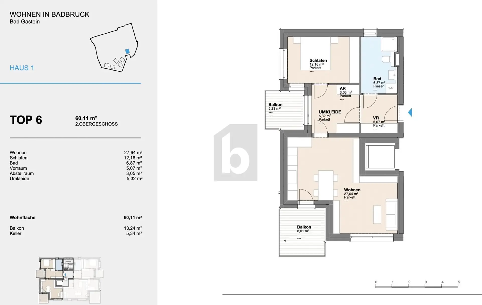 Einzigartige Chance auf eine Neubau-Etagenwohnung in 5640 Bad Gastein im Ortsteil Bad-Bruck: In sechs charmanten Wohnhäusern mit wenigen Einheiten genießen Sie Ruhe, Privatsphäre und Gemütlichkeit. Die überdurchschnittliche Bauqualität überzeugt mit präziser Ausführung, moderner, effizienter Bauweise, Photovoltaikanlage und Personenaufzug. Baustart Sommer 2026 ? ideal für alle, die ihre Wünsche noch in die Planung einbringen möchten. Provisionsfrei für Käufer. Ein Tiefgaragenplatz wird mit 23.000EUR berechnet.