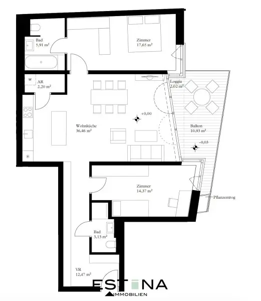 Während draußen das Leben spielt, öffnet sich hier ein Rückzugsort in den begrünten Innenhof. Großzügige Fensterflächen, ein klarer Grundriss und ein ostseitiger Balkon schaffen ein Wohngefühl, das leicht, ruhig und zugleich urban ist.