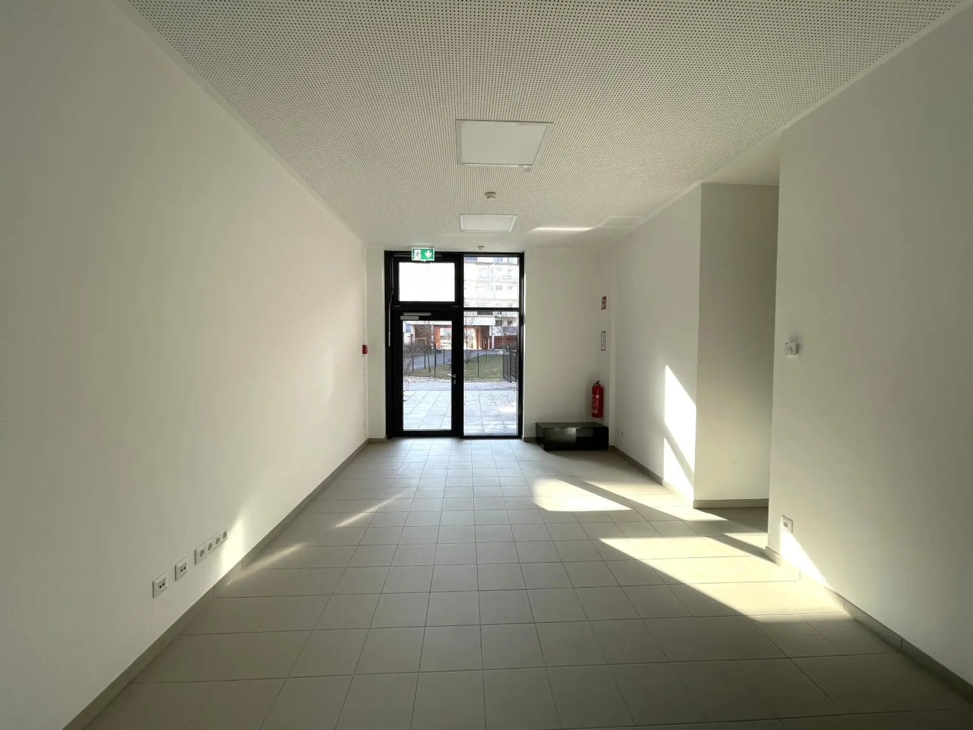 - Aufteilung: helle Fläche mit großen Glasfronten, Sanitärfläche, Teeküche, Vorraum