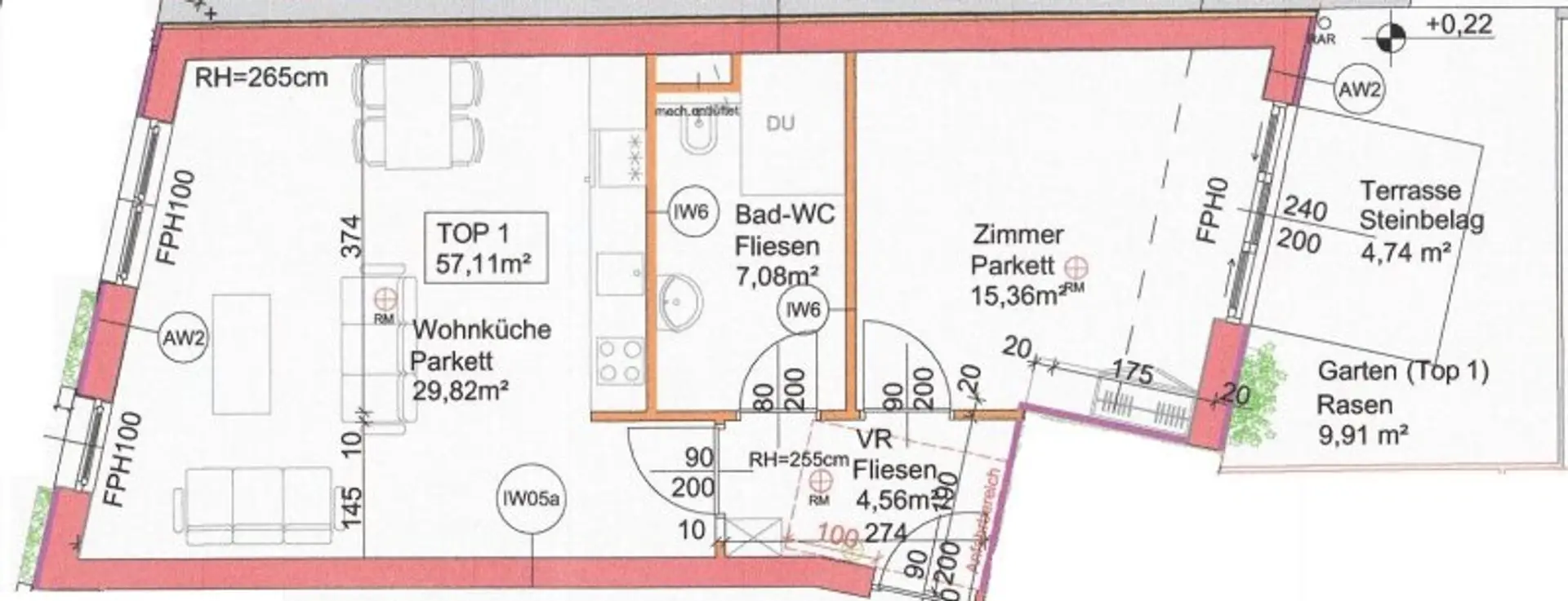 Top 2 (Erdgeschoss) 59.11 m² Nutzfläche, 16.79 m² Garten, 5.22 m² Balkon/Terrasse, 2.60 m² Keller: € 6.800,00/m², Preis € 439.892,00