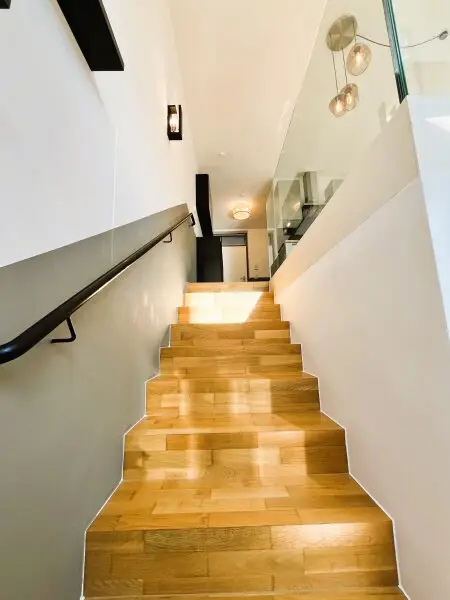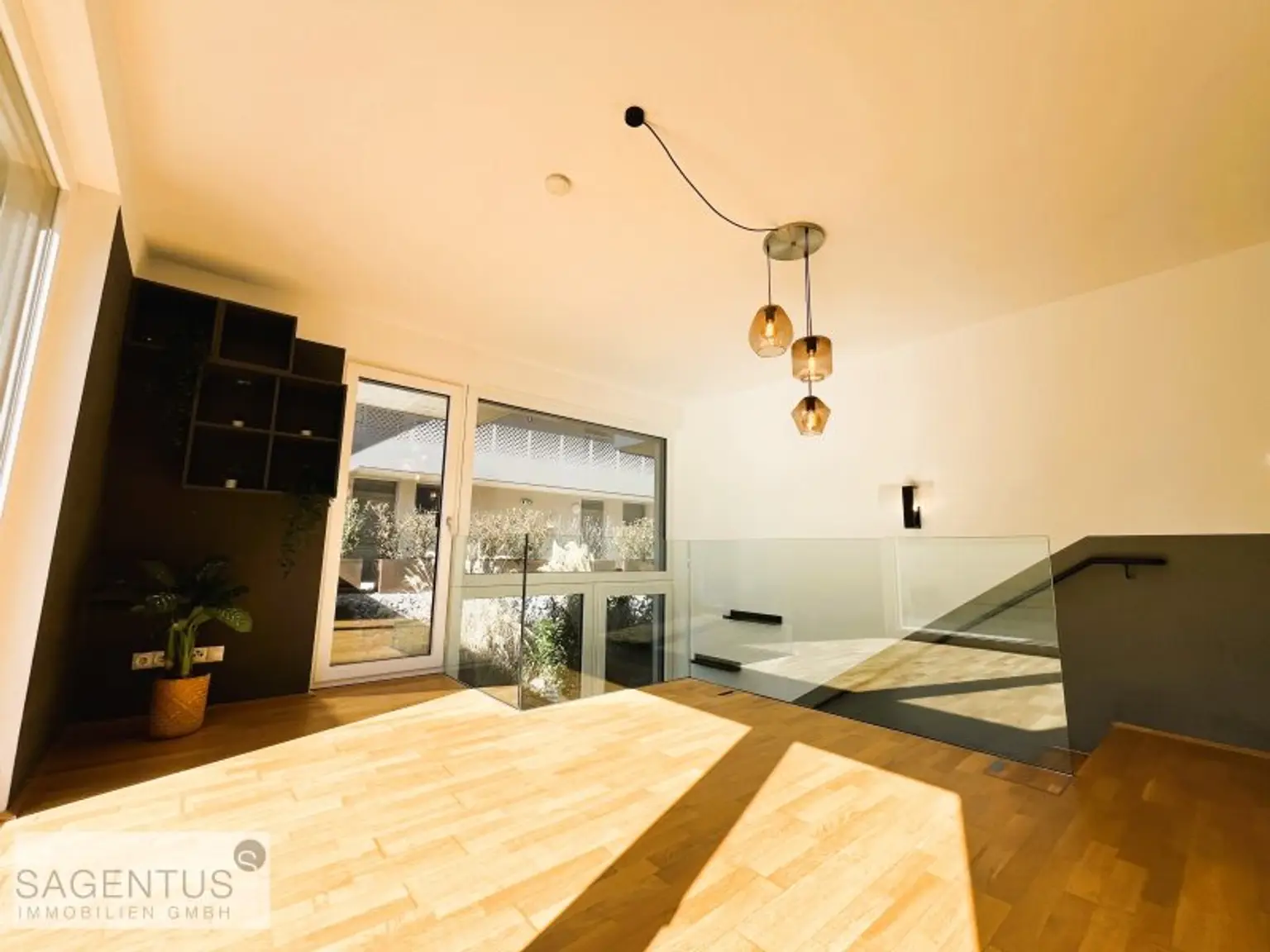 Diese _exklusive Immobilie_ mit edlen Eichen-Echtholzparkettböden überzeugt neben großen, modernen Fensterfronten durch eine elegante, anthrazitfarbene Küche mit Markengeräten sowie einem hochwertigem Glasgeländer mit klarem Design, welches eine _nahtlose Optik_ schafft und den lichtdurchfluteten Wohnraum dadurch _offen sowie großzügig_ wirken lässt.