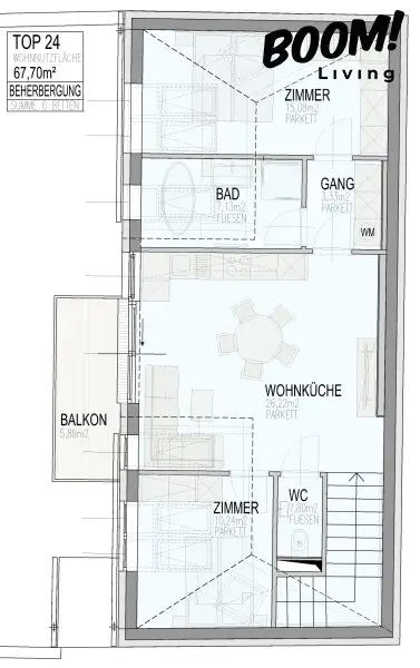 67,70 m² Wohnfläche + Balkon mit 5,89 m²