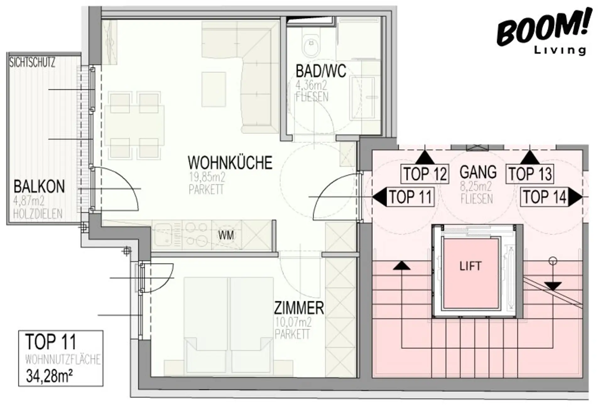 TOP 11 ist ein elegant geschnittenes 2-Zimmer-Apartment mit 34,28 m² Wohnnutzfläche, das modernes Wohnen auf kompaktem Raum perfekt interpretiert. Die Wohnung liegt im 3. Obergeschoss des Neubauprojekts und überzeugt durch eine harmonische Raumaufteilung, hochwertige Materialien und eine attraktive Außenfläche.