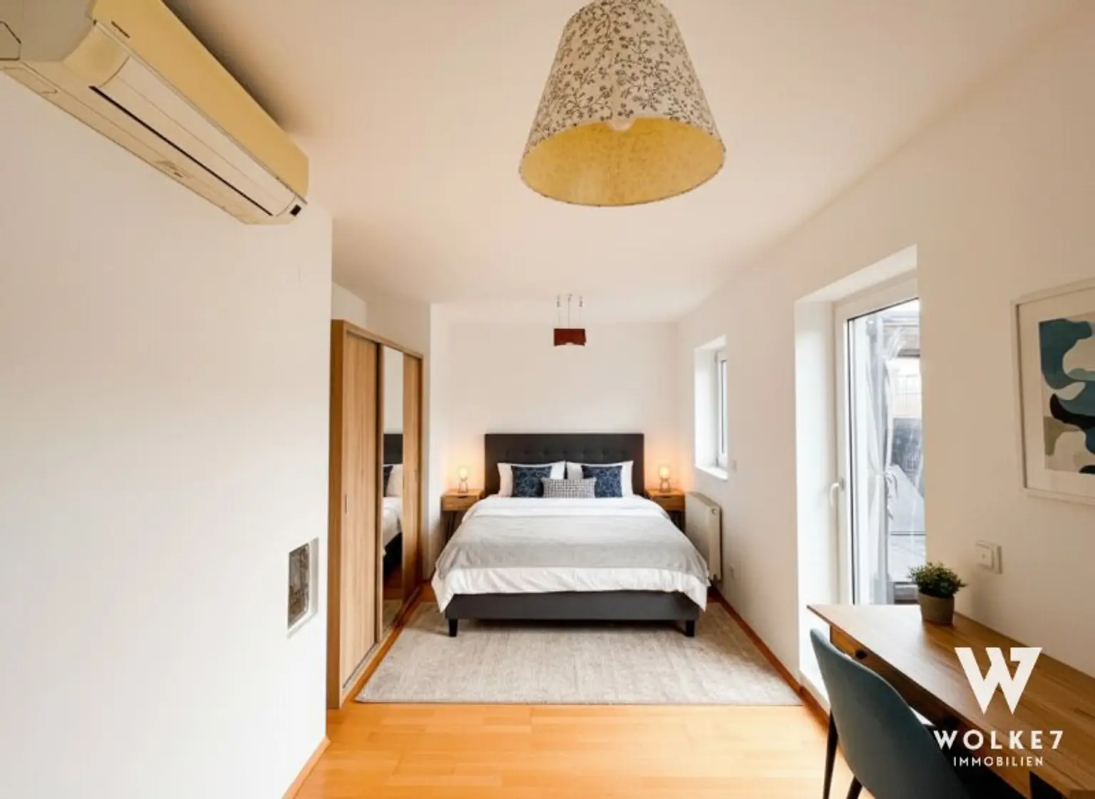 Der helle Wohnbereich mit moderner DAN-Einbauküche und direktem Zugang zur Terrasse bildet das Herzstück der Wohnung. Durch die großzügige Raumgestaltung lässt sich hier bei Bedarf ein drittes Zimmer unkompliziert durch eine Rigipswand schaffen – perfekt, wenn zusätzlicher Raum für Arbeiten, Gäste oder Kinder gewünscht ist.