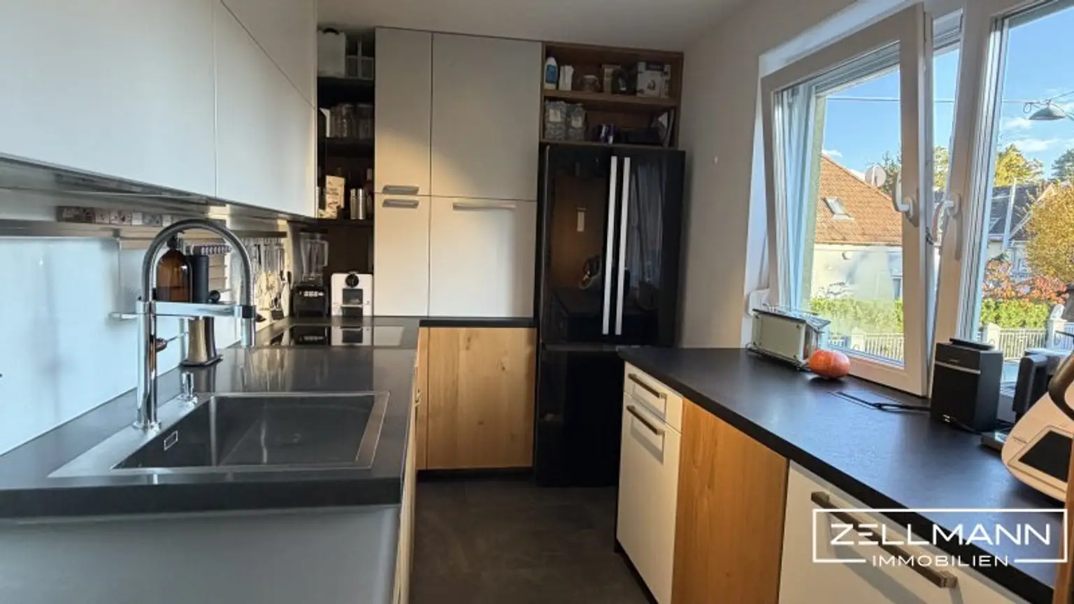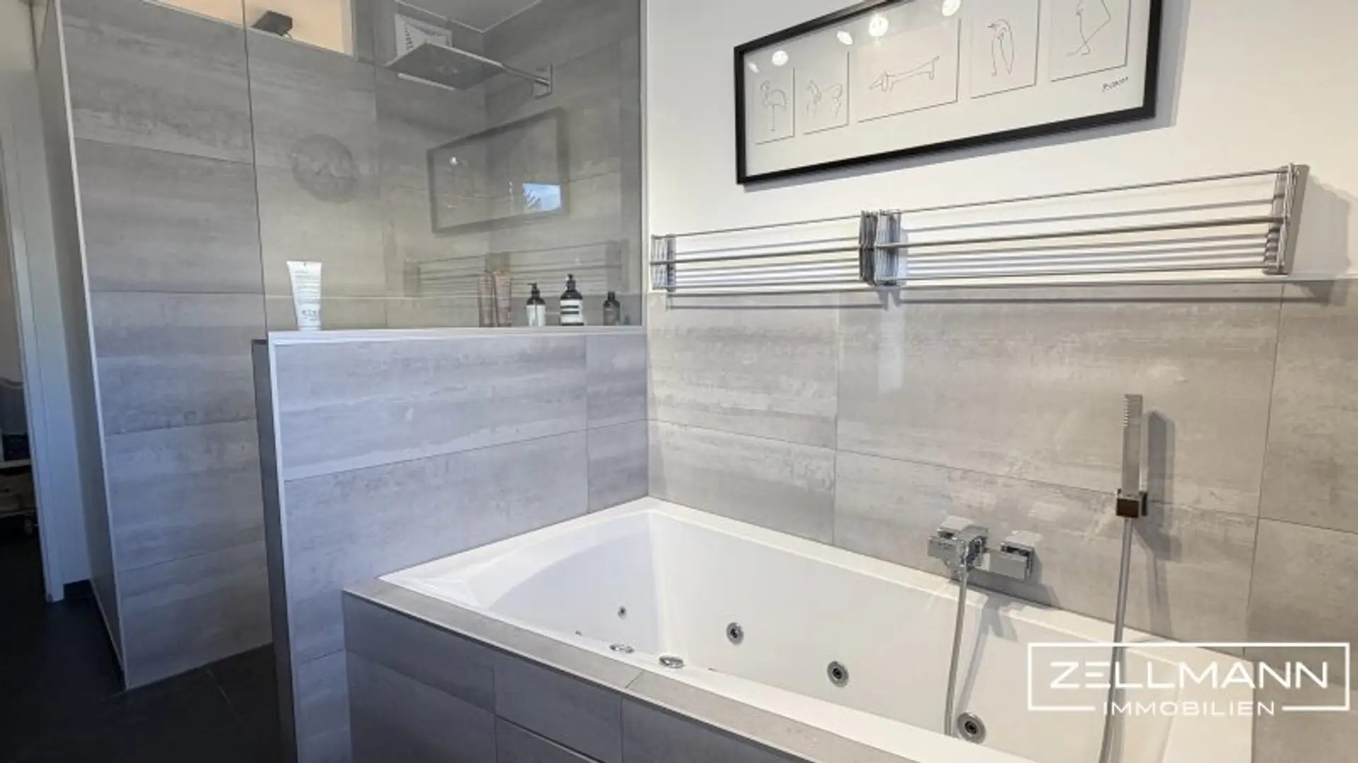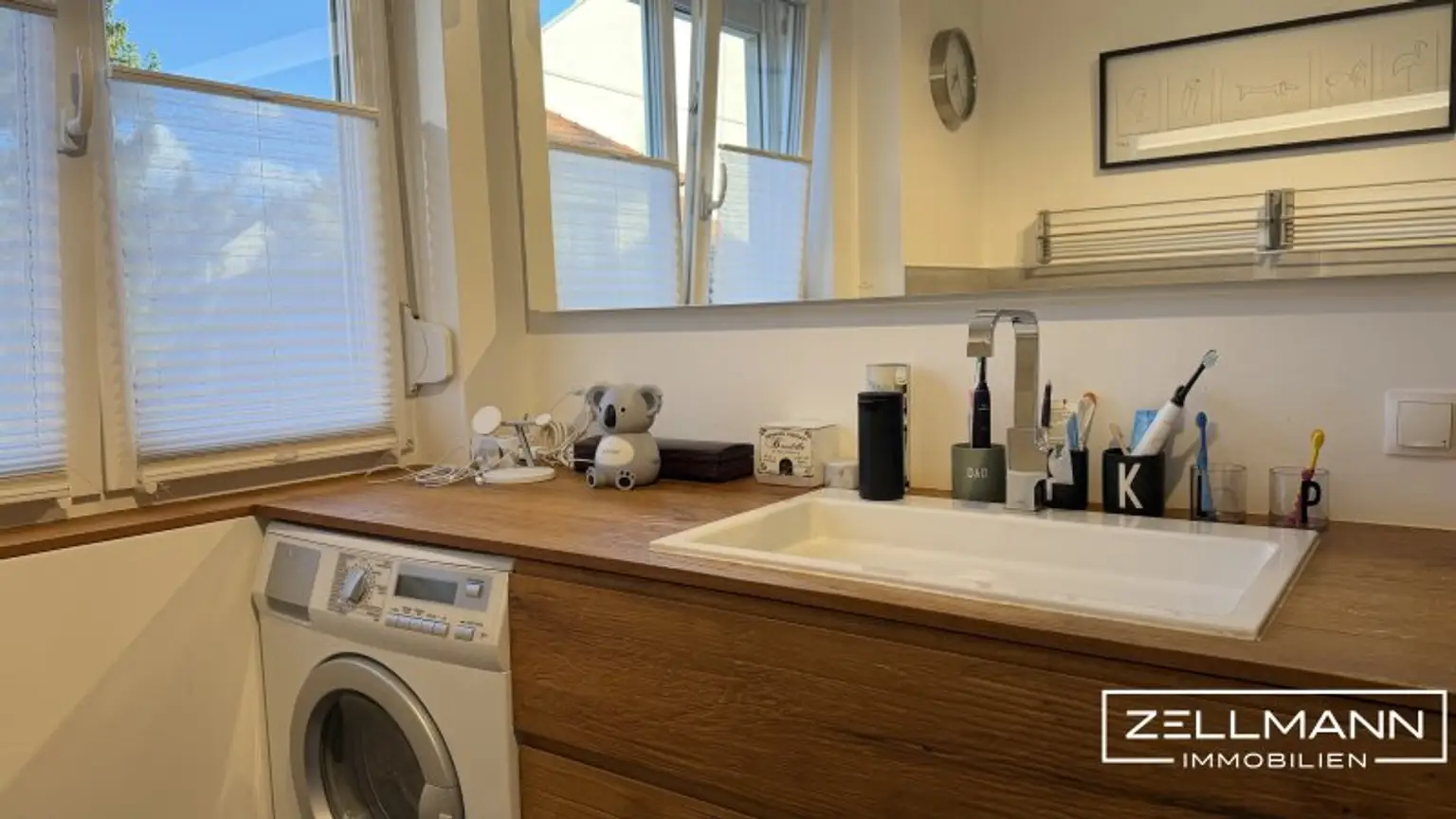 Das Wohn- und Esszimmer ist lichtdurchflutet und öffnet sich direkt zur großen Südterrasse, wodurch ein fließender Übergang zwischen Innen- und Außenbereich entsteht. Die modernisierten Nassräume präsentieren sich zeitlos, pflegeleicht und hochwertig. Insgesamt ergibt sich ein Wohngefühl, das sofort bezugsfertig ist und langfristig Wertstabilität verspricht.