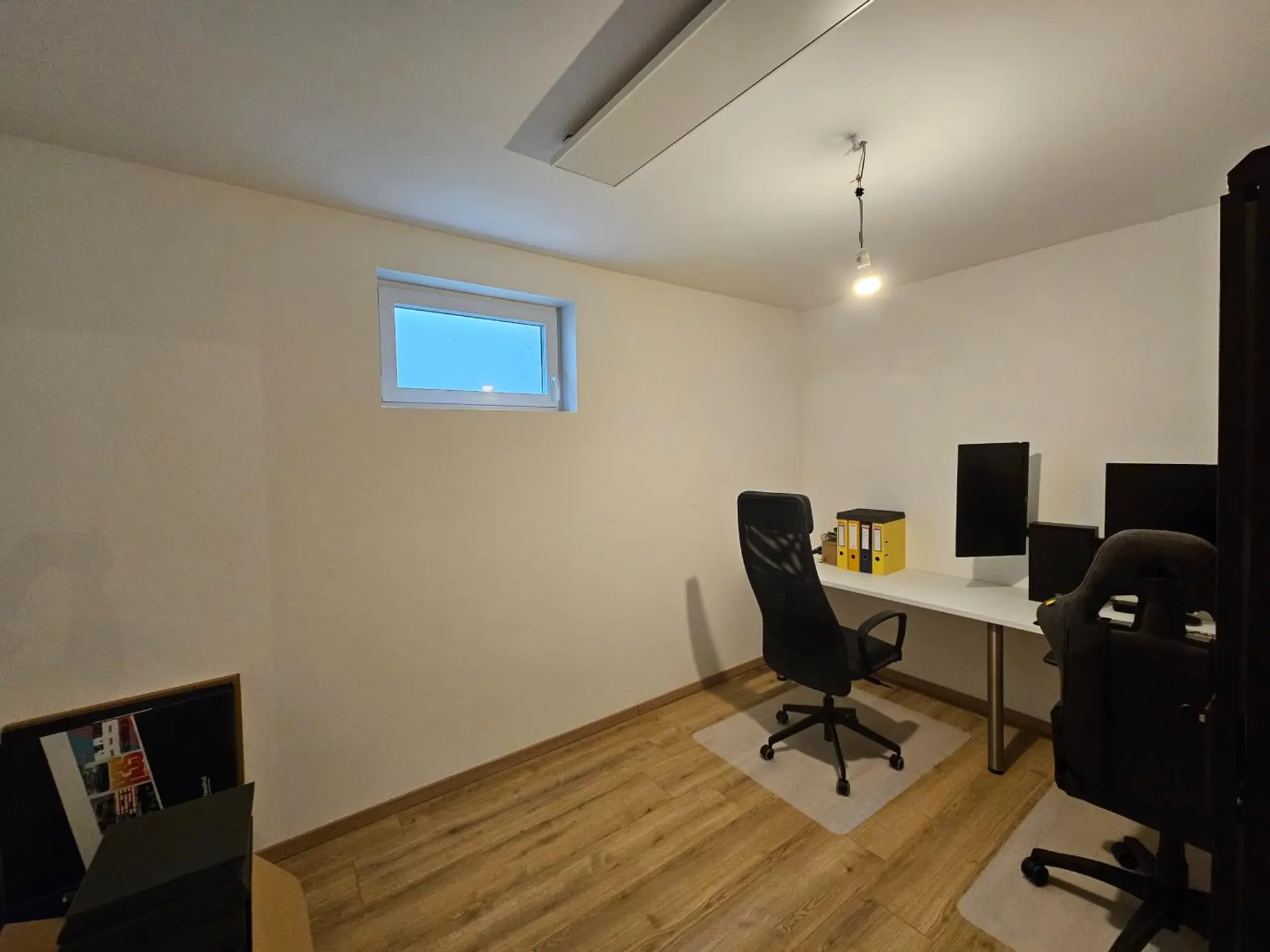 Im Erdgeschoß befinden sich 3 Garagen, ein Technikraum, ein Vorraum mit dem Stiegenaufgang ins Obergeschoß, ein WC mit Dusche und 4 Räume (siehe Plan bei Fotos).