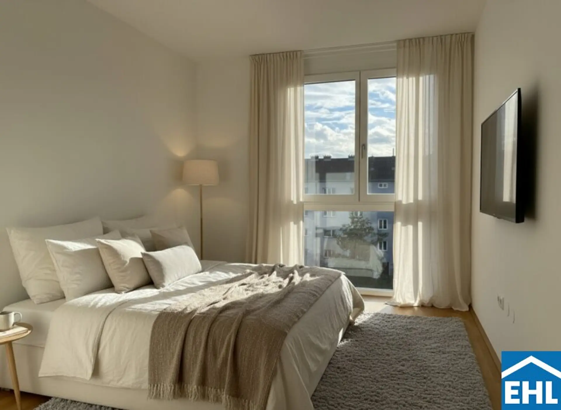 Die möblierten Bilder wurden mittels KI virtuell möbliert um eine bessere Vorstellung der Einrichtungsmöglichkeiten zu vermitteln.