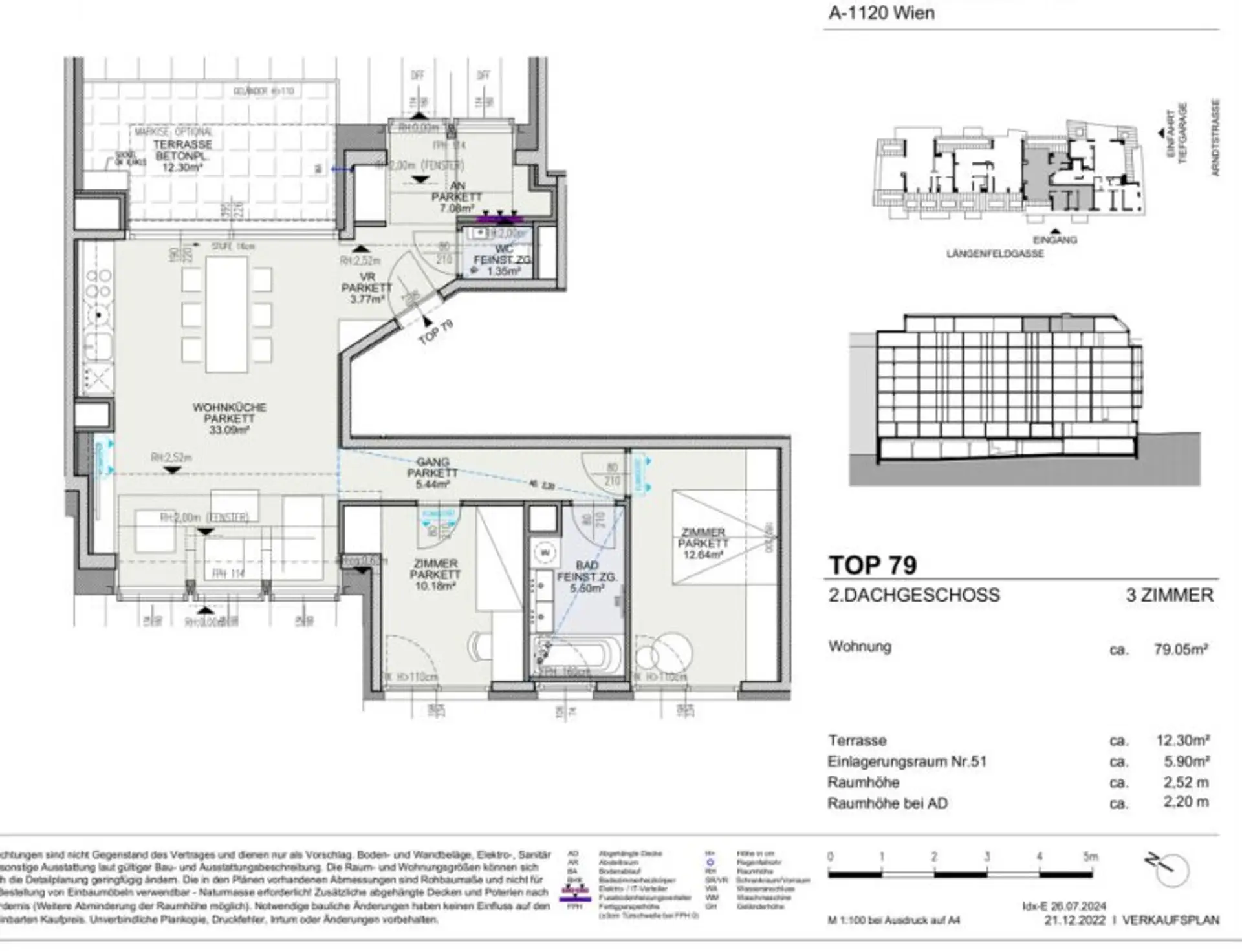 Wohnungsbeschreibung Top 79 im 2. DG mit 79,05 m2 Wohnfläche + Terrasse: